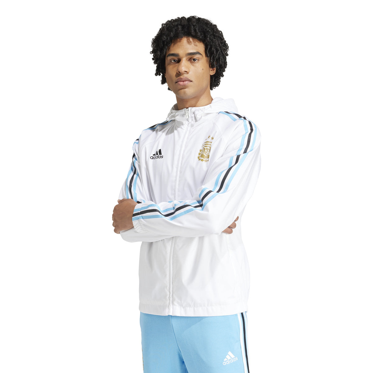 This adidas Argentina DNA Windbreaker is made of lightweight polyester, designed to offer protection against wind and rain while remaining breathable and comfortable. Its sleek, modern look is finished with the Argentina crest on the chest.