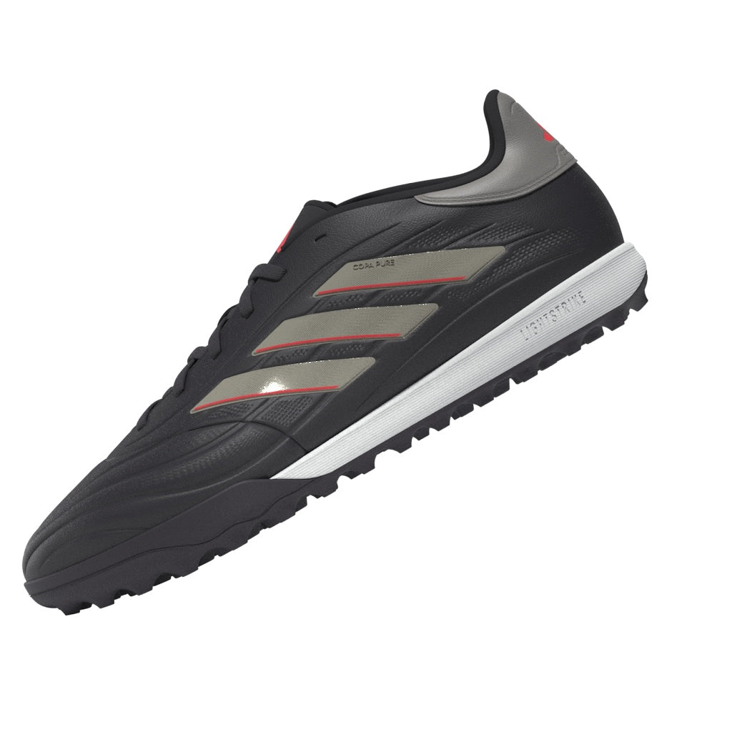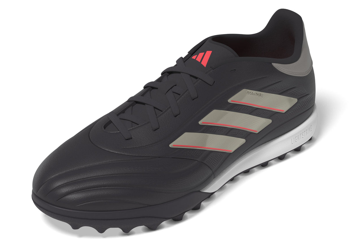 From brain to boot, and back again. Connect with the ball on every level in adidas Copa Pure 2. The comfortable upper on these League soccer shoes shows off vintage details, ensuring you look and feel as classy as your soccer. Its cow leather forefoot delivers a cultured touch. Underneath, a lug rubber outsole makes for unflustered play on artificial turf courts.