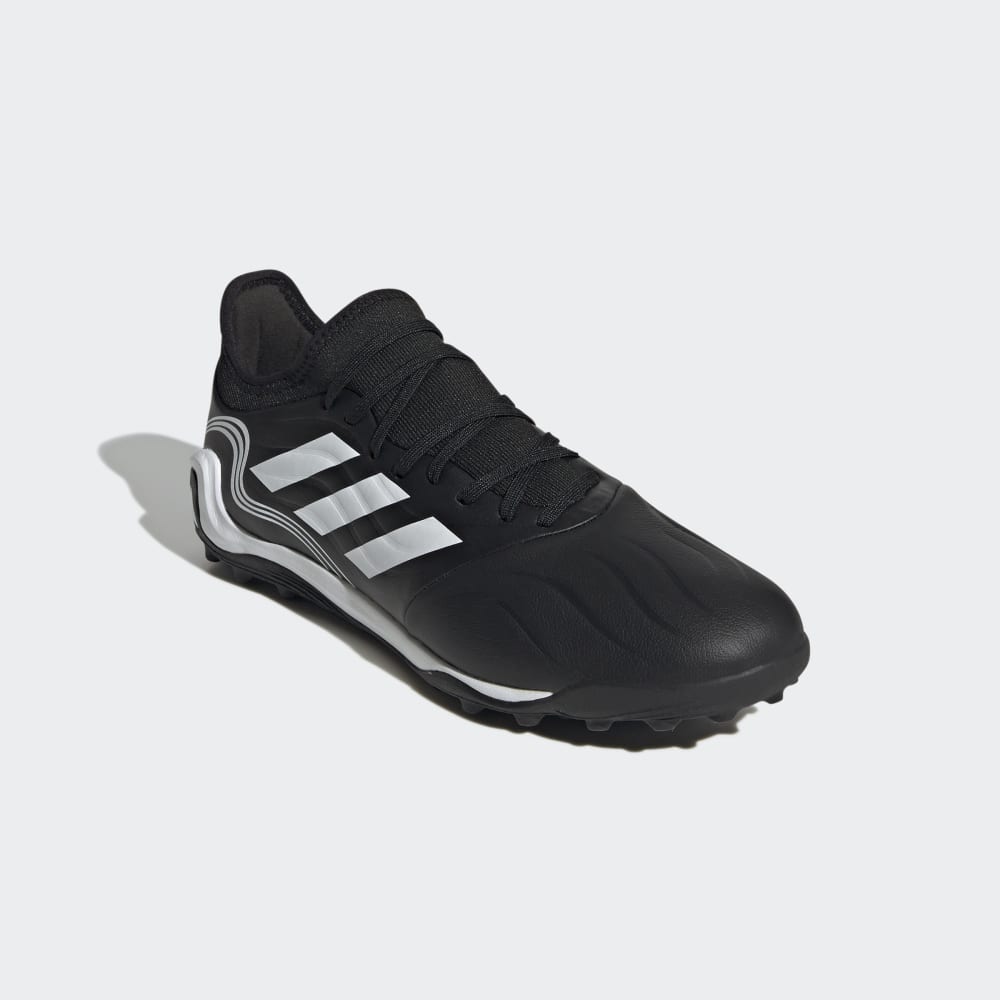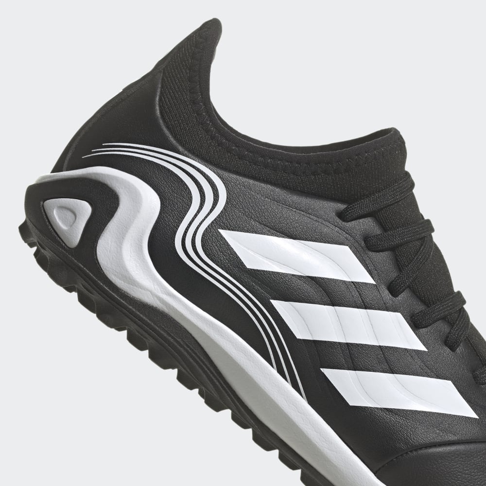 In the chaos of the cage, the lightest touch leaves a lasting impression. Fine-tune your football senses in adidas Copa. Made for easy entry, the stretchy collar on these boots molds to your foot's shape so you stay comfortable and composed. A soft leather forefoot adds assurance to every touch, and a lugged outsole keeps your game purring on artificial turf.