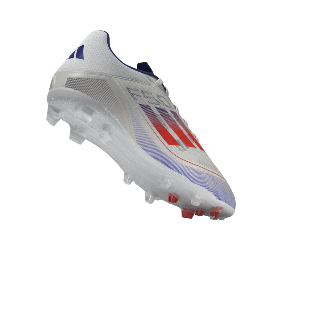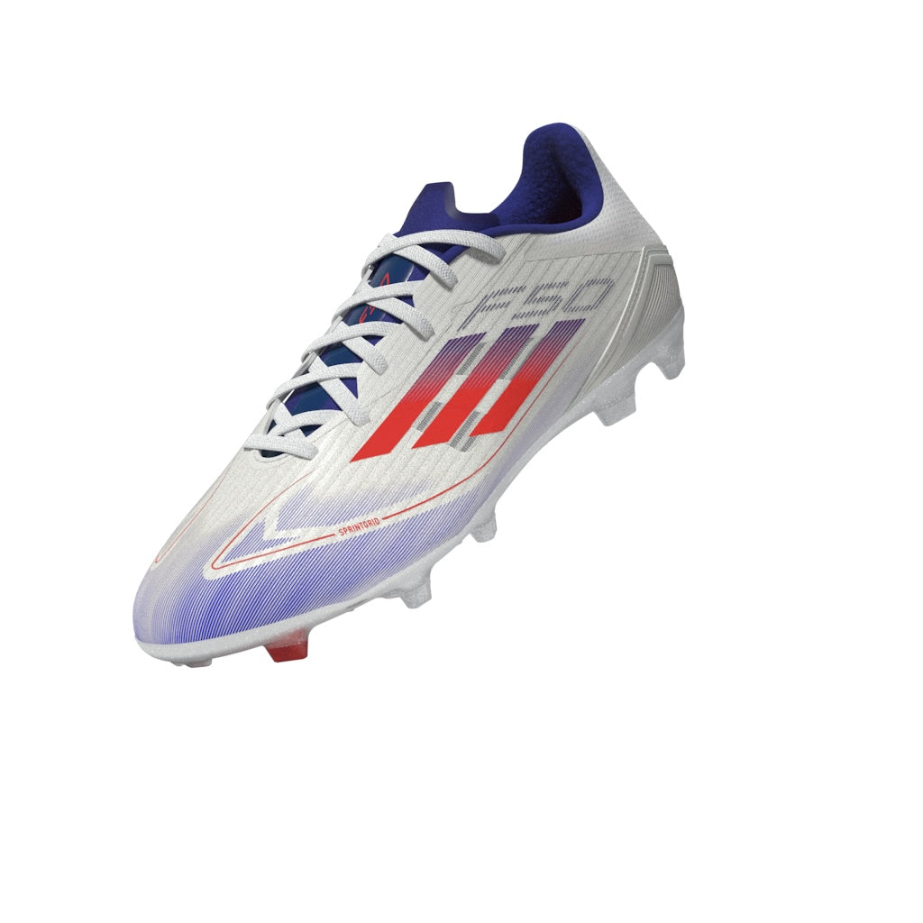 Free the fast with the adidas F50. Created to unlock the full potential of your acceleration, movement and speed. Locking you in with a stretchy tongue, the Fiberskin upper on these lightweight adidas League soccer cleats shows off a Sprintgrid print on the forefoot. Down below, the Sprintplate 360 outsole is built for propulsion on multiple surfaces. This product features at least 20% recycled materials. By reusing materials that have already been created, we help to reduce waste and our reliance on finite resources and reduce the footprint of the products we make.