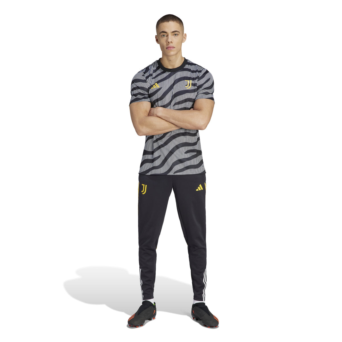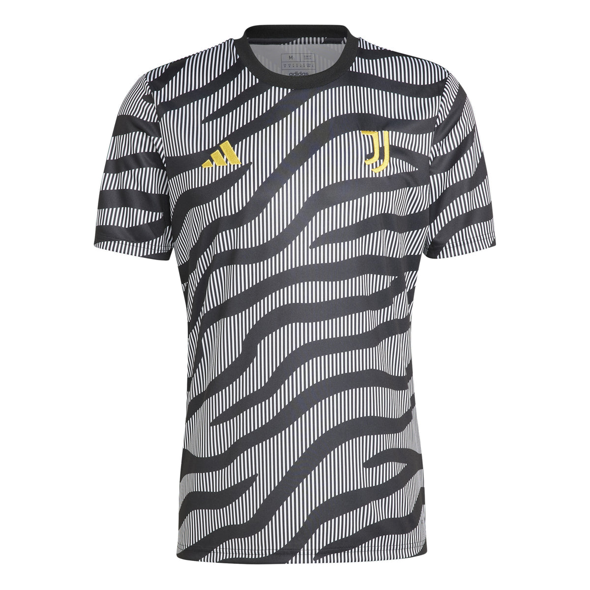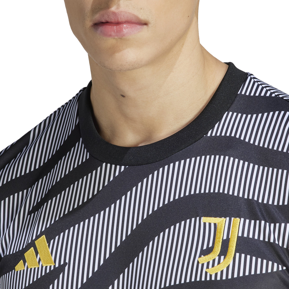 A JUVENTUS WARM-UP JERSEY WITH THE ICONIC BLACK-AND-WHITE TEAM COLORS.