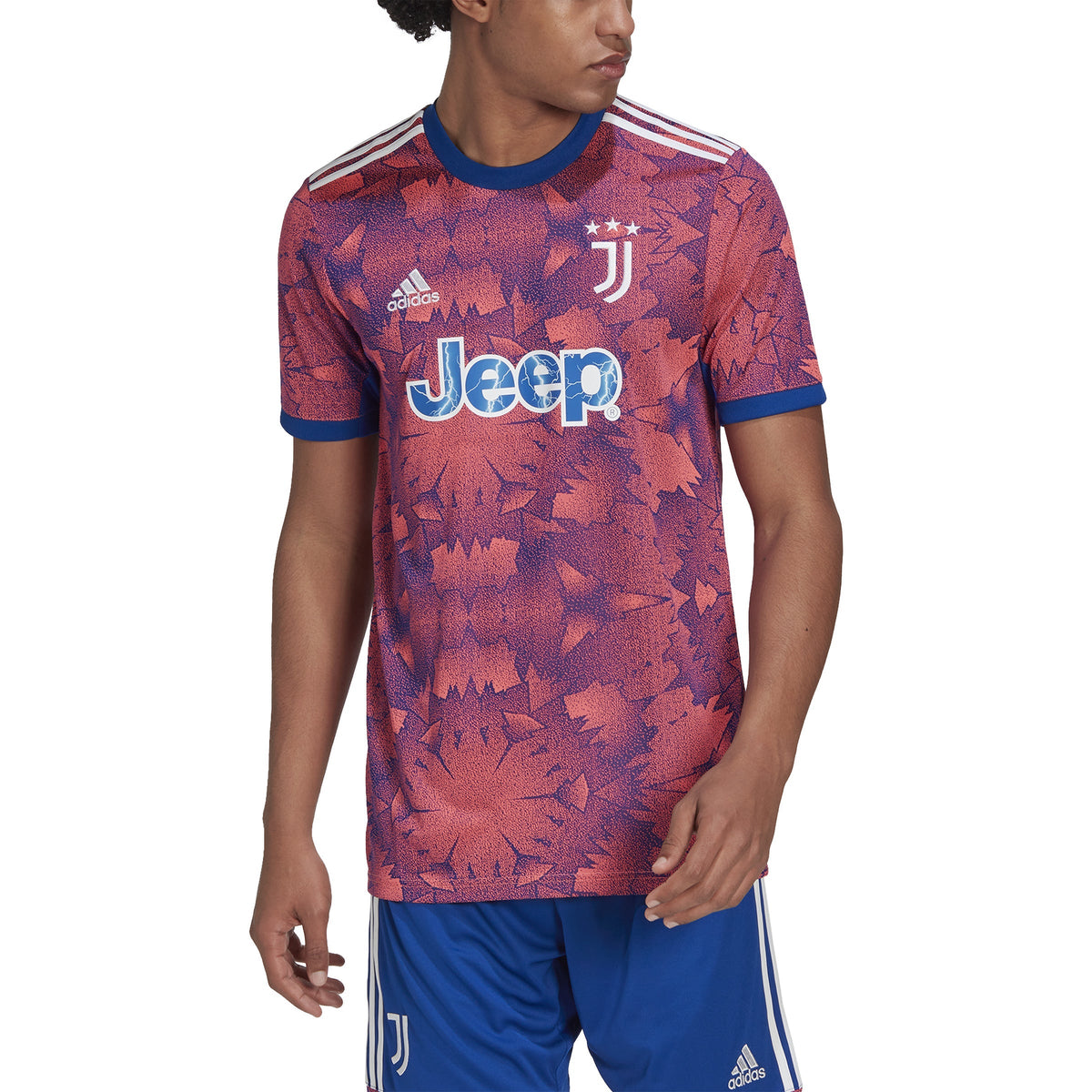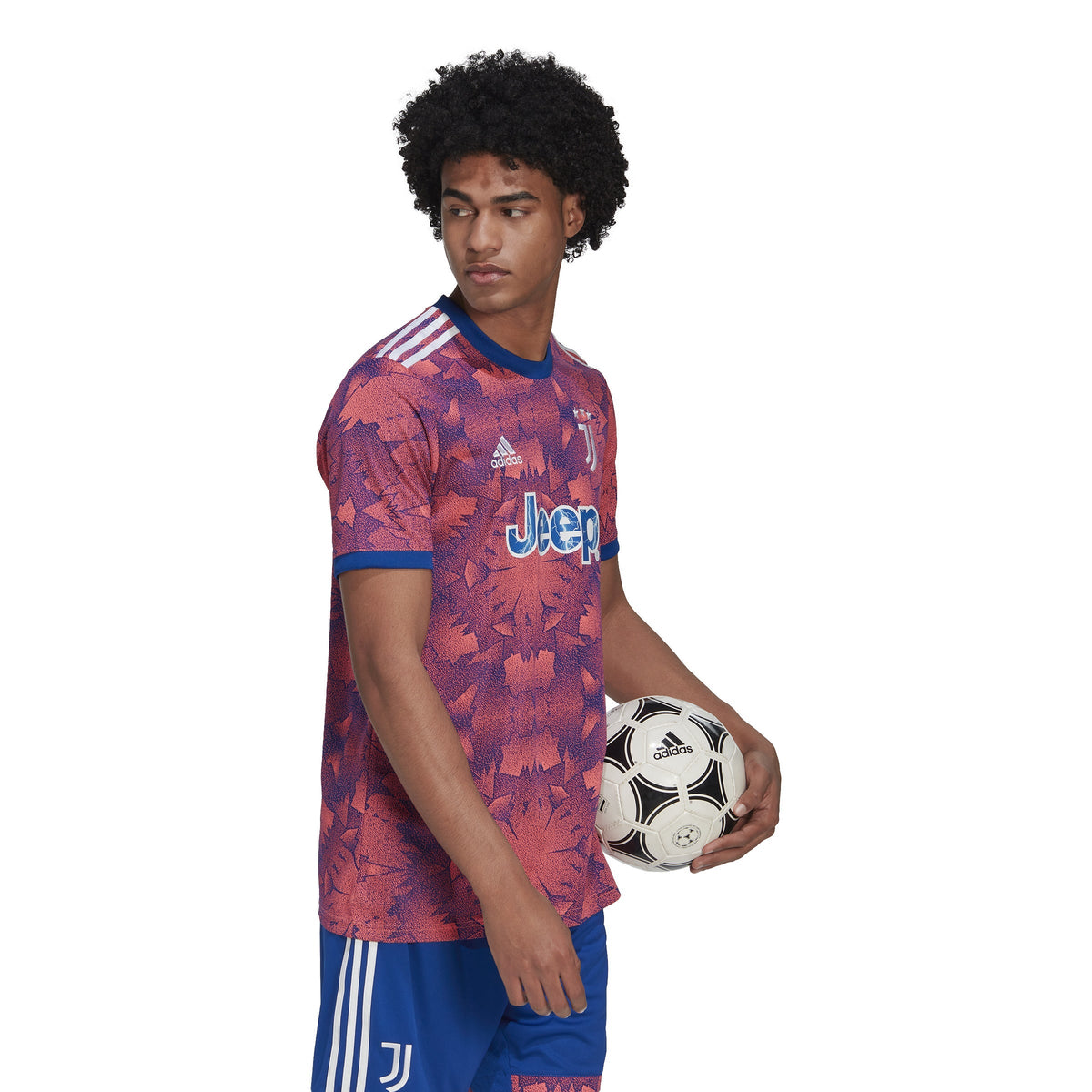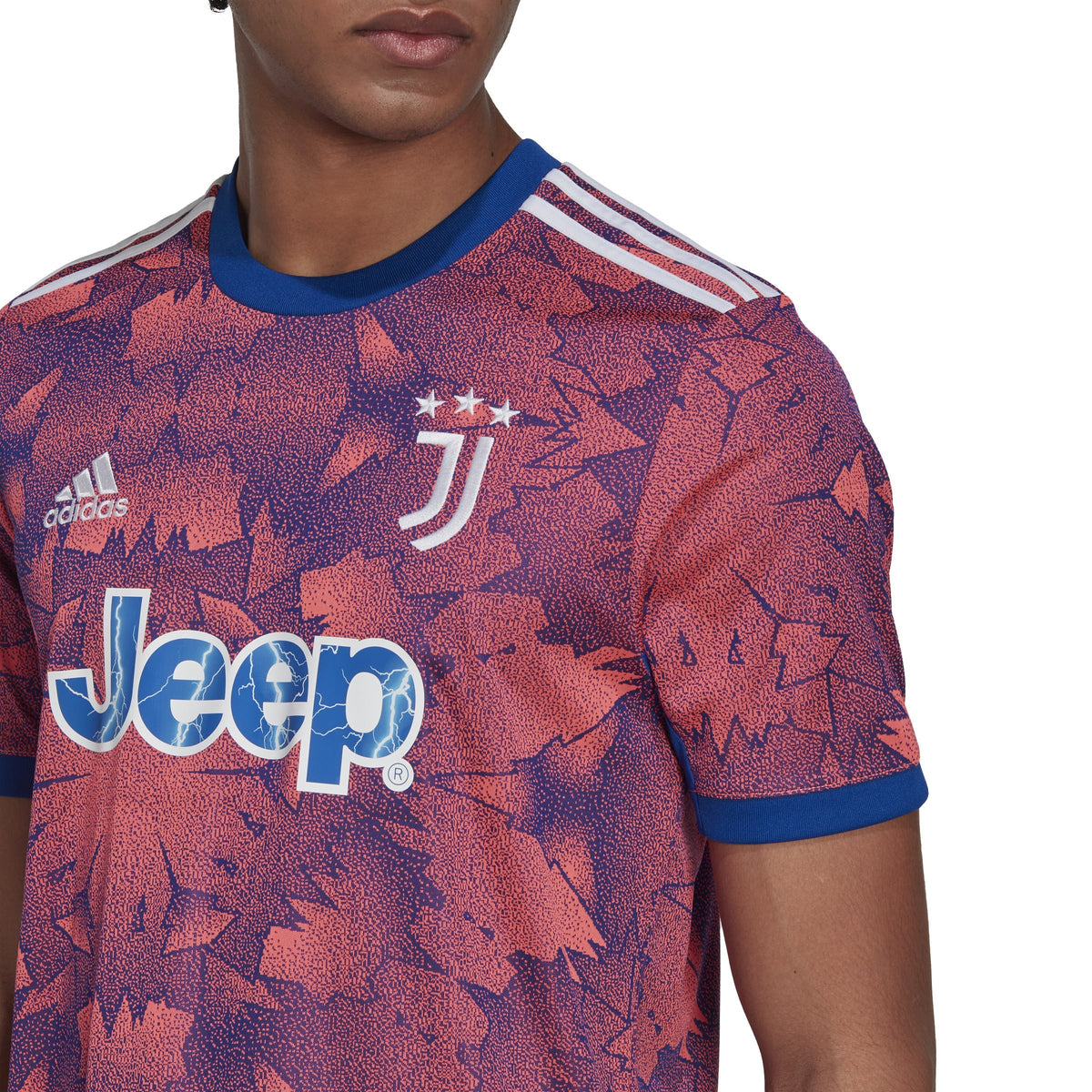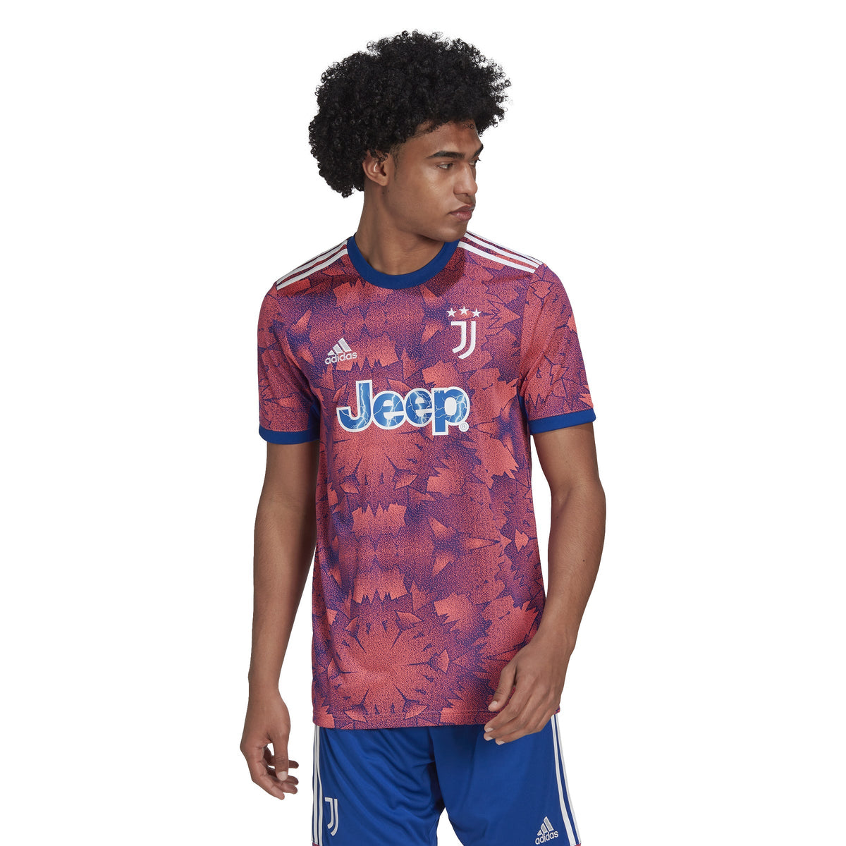 JUVENTUS 22/23 THIRD JERSEY AN EYE-CATCHING JUVENTUS FAN JERSEY MADE WITH RECYCLED MATERIALS. Engineered for enchanting football. This adidas Juventus third jersey shows off a mesmerising graphic and vibrant colours to match the team's magical dislpays. Designed to keep fans comfortable, it combines moisture-absorbing AEROREADY and breathable mesh panels. That woven team badge shows you don't miss a trick when your team is on the field. Made with 100% recycled materials, this product represents just one of our solutions to help end plastic waste. Regular fit Ribbed crewneck 100% recycled polyester engineered Moisture-absorbing AEROREADY Mesh inserts under arms Ribbed cuffs Juventus embroidered crest Engineered