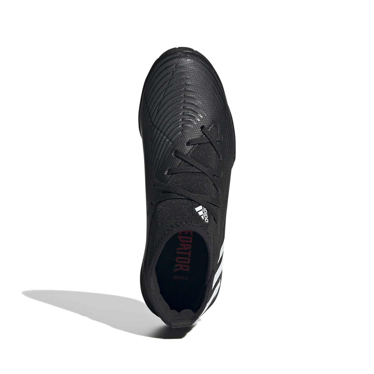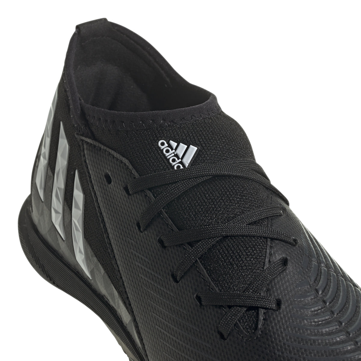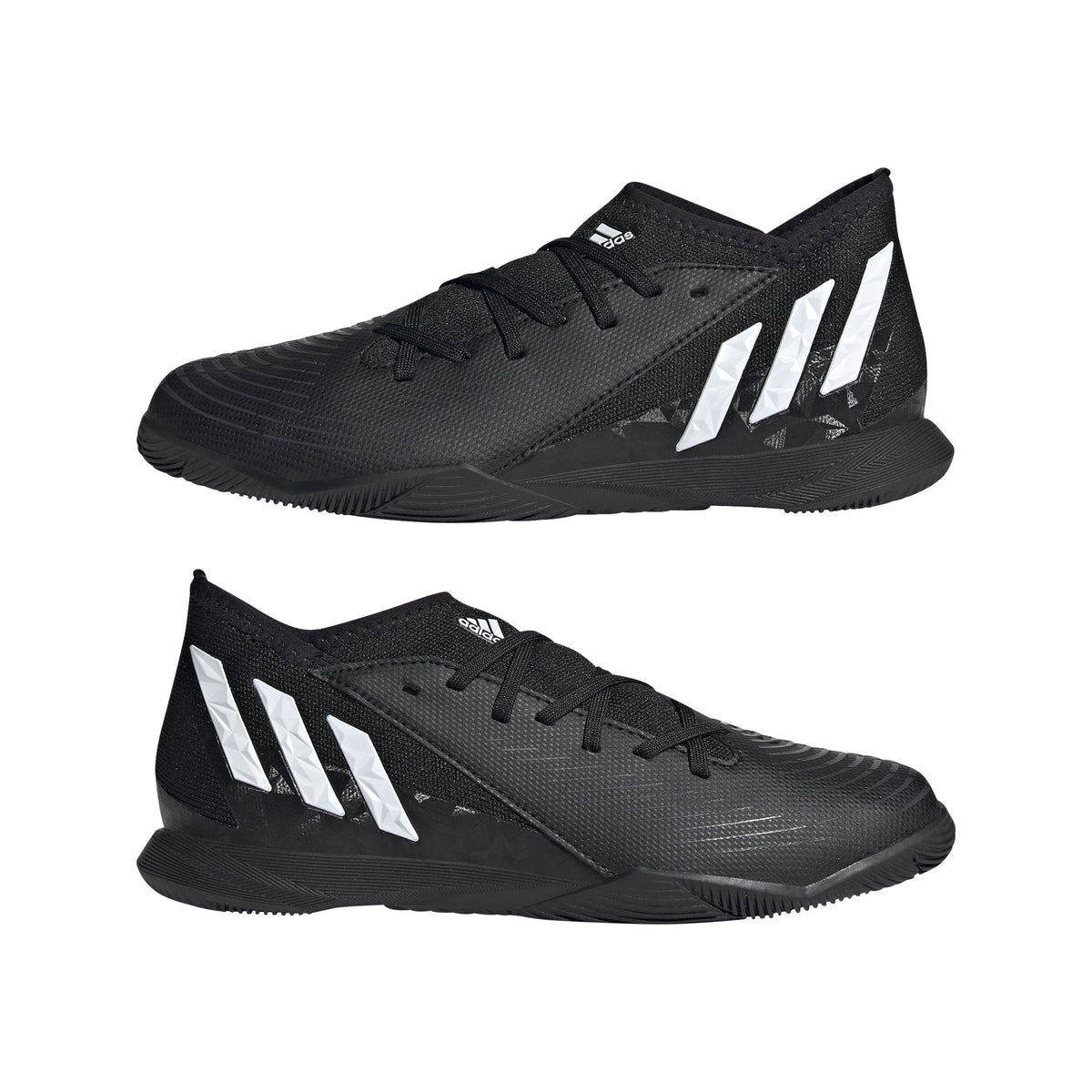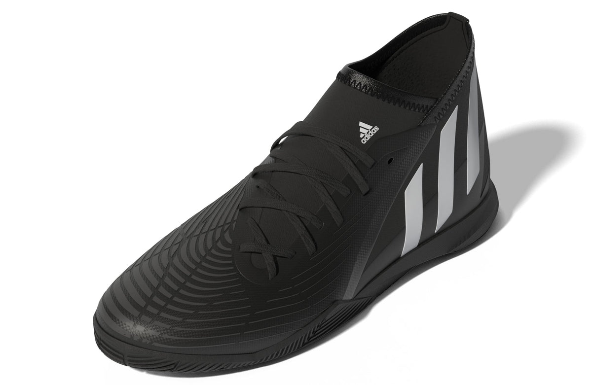 PREDATOR EDGE.3 INDOOR SHOES CONTROL-ENHANCING INDOOR SOCCER SHOES MADE IN PART WITH RECYCLED CONTENT. Some walk into the cage and see limitations. You see possibilities. Because you've been doing the impossible all your life. Change the game in adidas Predator. These juniors' soccer shoes help you own the ball with a Control Zone upper containing strategically placed areas of grip-enhancing print. The rubber outsole keeps you in charge on indoor courts. Made in part with recycled content generated from production waste, e.g. cutting scraps, and post-consumer household waste to avoid the larger environmental impact of producing virgin content.