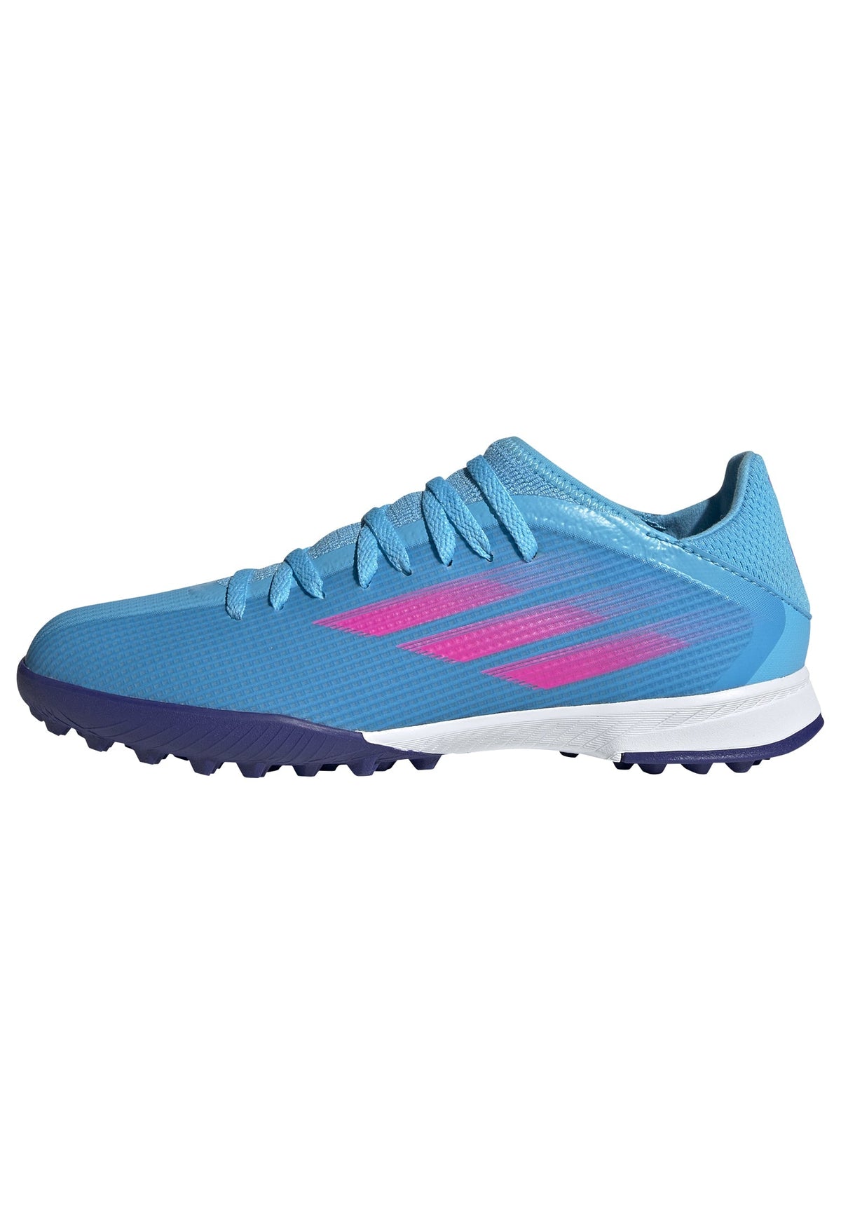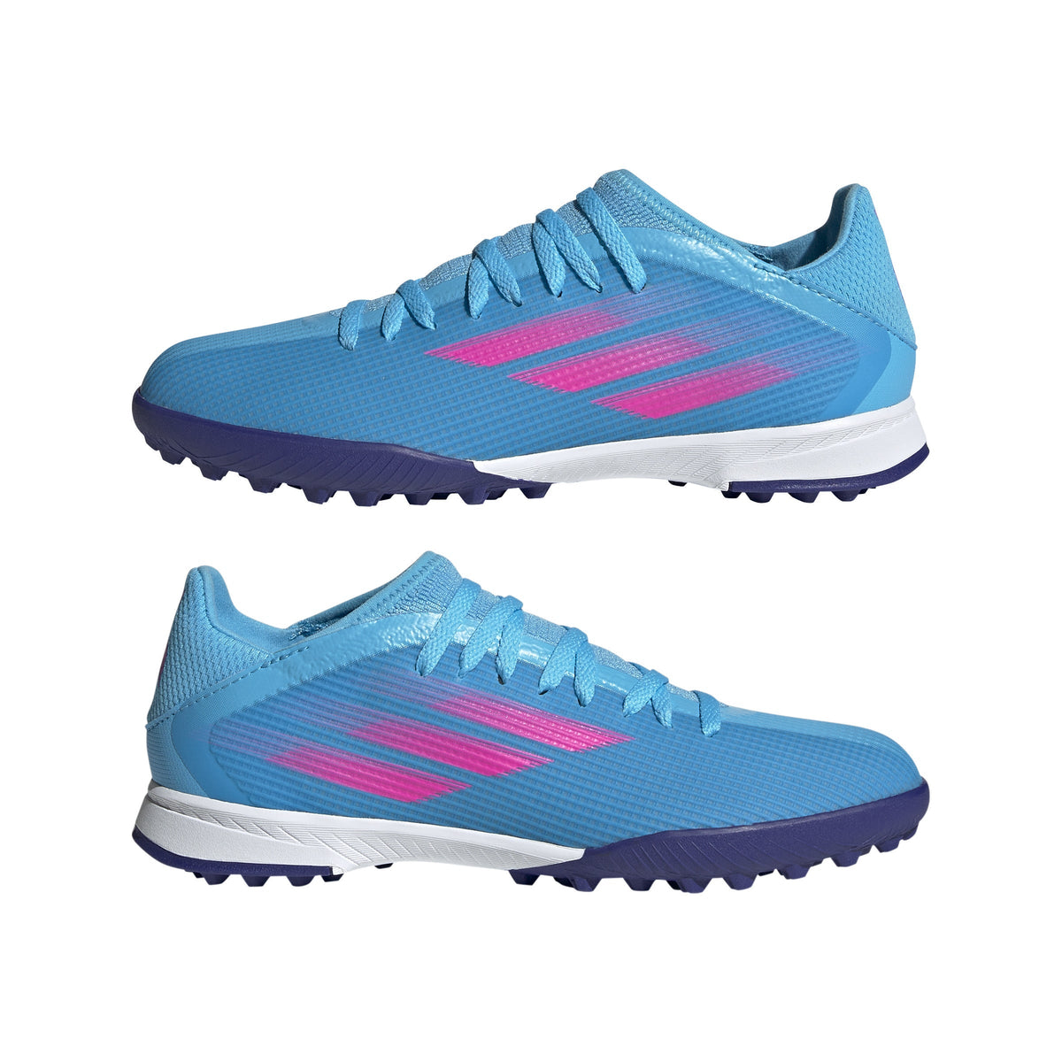 Designed for kids, the adidas Kids X Speed Flow 3 TF Turf Shoes are designed for superior performance and style. With a lightweight design, breathable upper material and durable outsole, these shoes will keep kids comfortable and mobile all game long.