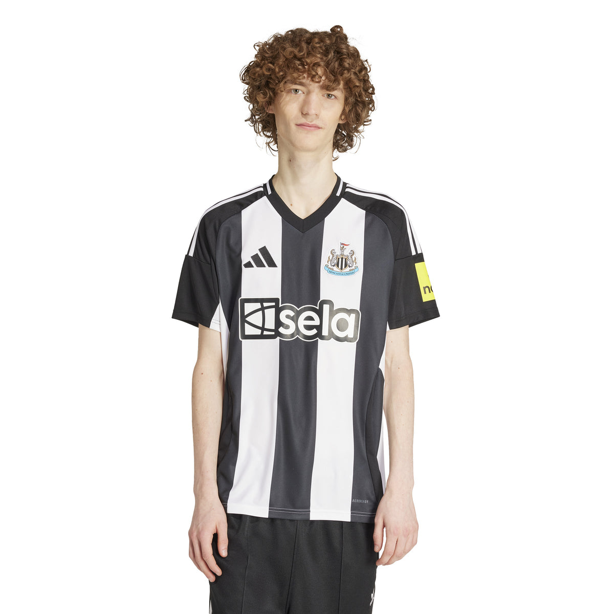 Introducing the adidas Men's Newcastle Home Jersey, the perfect choice for any fan of the Newcastle football club. Made with high-quality materials, this jersey offers both style and comfort. Its classic black and white design, combined with the official logo, will proudly display your support. Get yours today and show off your team spirit!