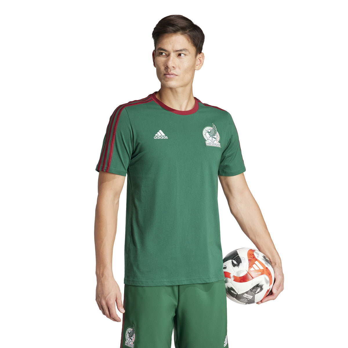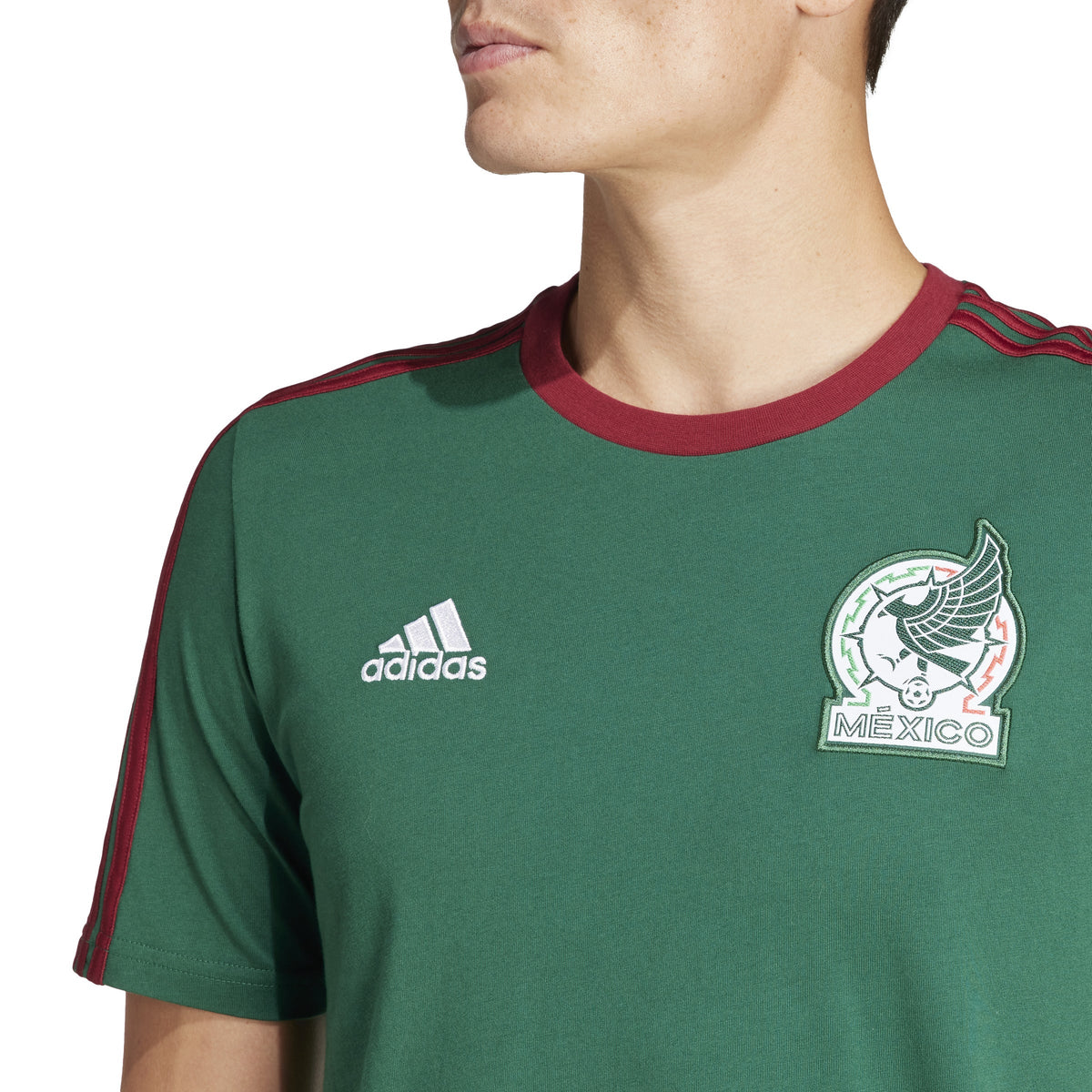 This officially licensed adidas Mexico DNA Tee is designed to deliver a comfortable fit and classic sports style. It's made with 100% cotton fabric and features a ribbed crewneck for a secure fit. Show your support for Mexico with this stylish tee.