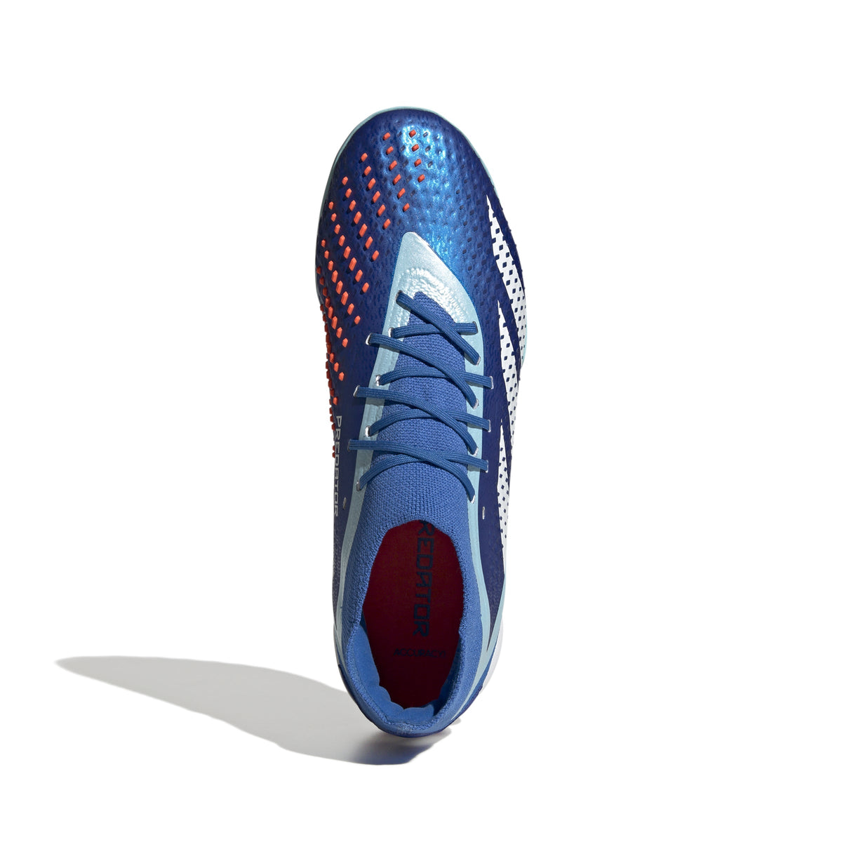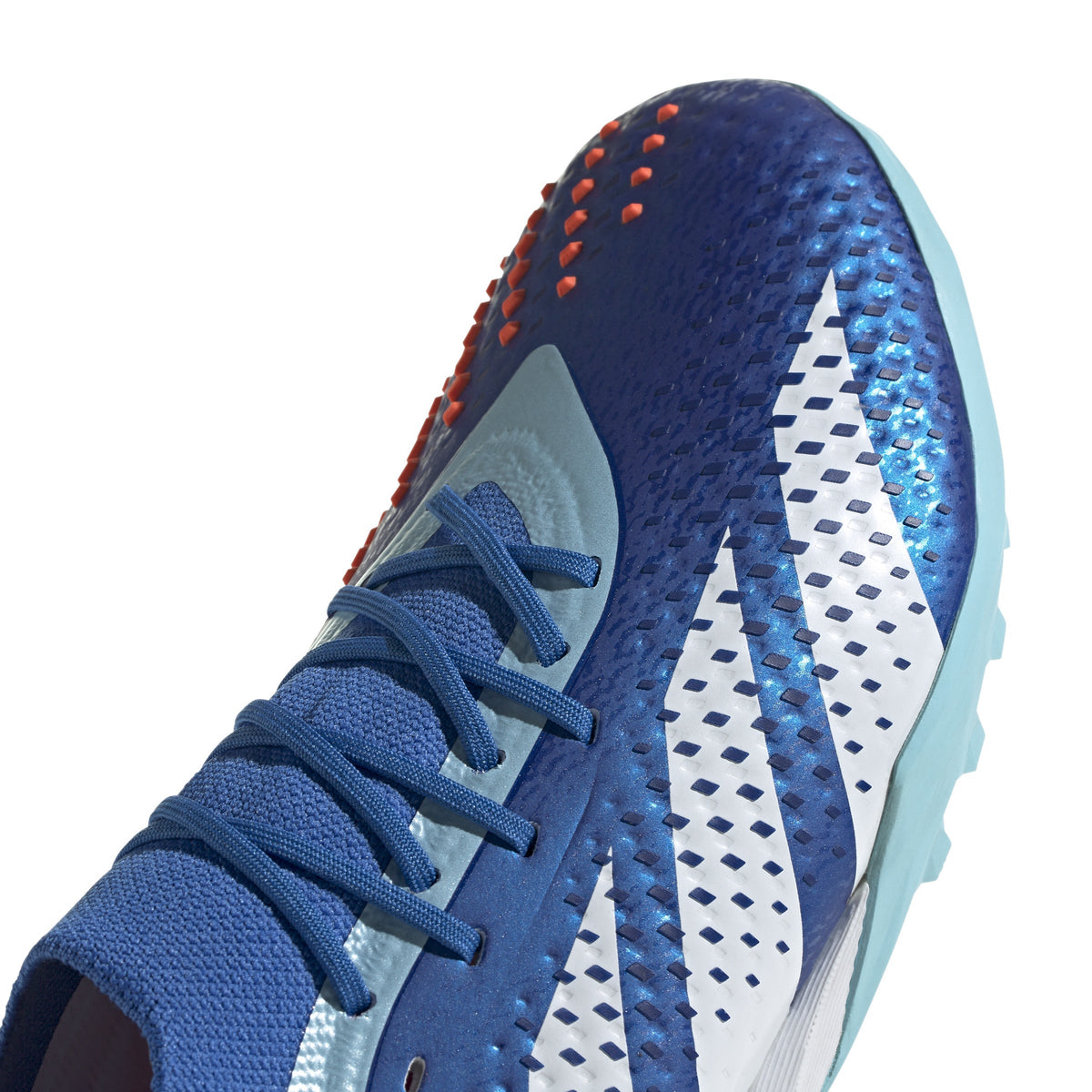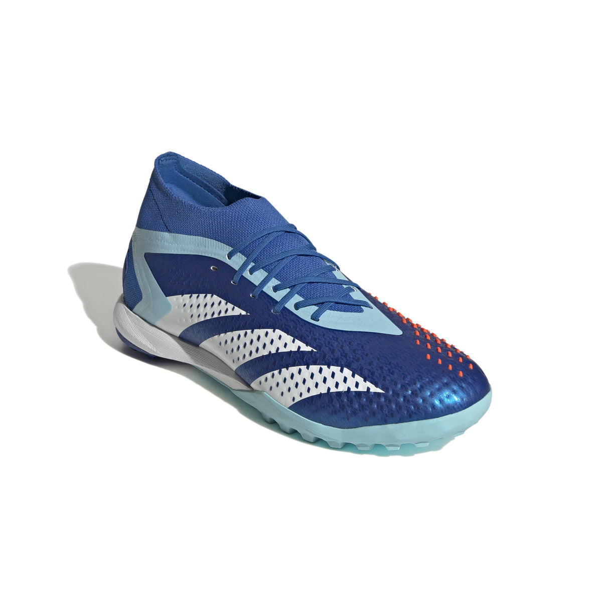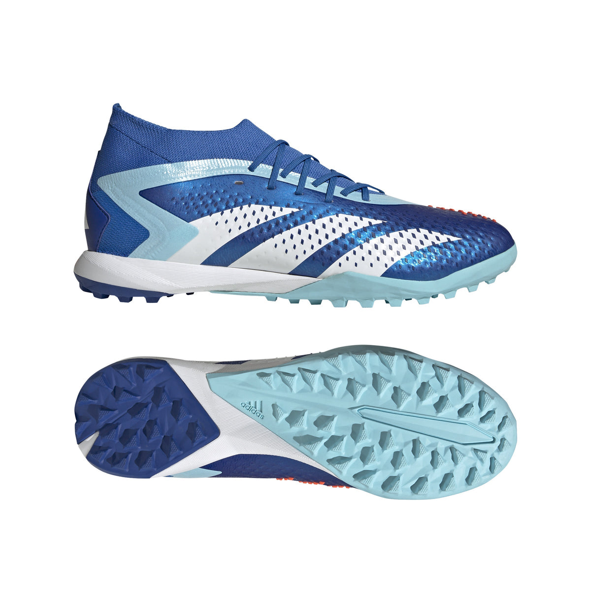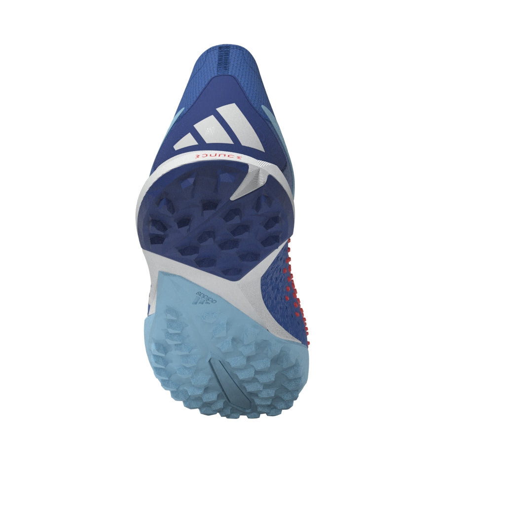 Top corner. Bottom corner. All the corners. adidas Predator Accuracy is crafted for goalscoring, so you know the ball will find the net. The fun's in choosing how it gets there. These soccer shoes have a soft HybridTouch upper with High Definition Grip rubber elements that deliver biting grip on the ball without compromising forefoot flexibility. A Bounce midsole and lug rubber outsole keep you comfortable and stable on artificial turf. Made with a series of recycled materials, this upper features at least 50% recycled content. This product represents just one of our solutions to help end plastic waste.