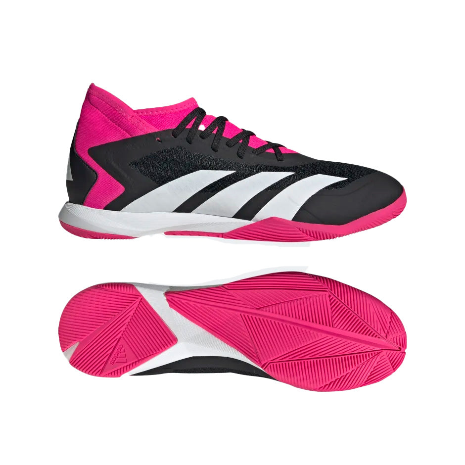 Control + accuracy = confidence. When the goal's in your sights, target perfection with adidas Predator Accuracy. Breathable and flexible, the mesh upper on these soccer shoes is designed for comfortable play during high-intensity games. A non-marking rubber outsole keeps you in boss mode on indoor courts, and that abrasion-resistant toe cap adds durability. Made with a series of recycled materials, this upper features at least 50% recycled content. This product represents just one of our solutions to help end plastic waste.