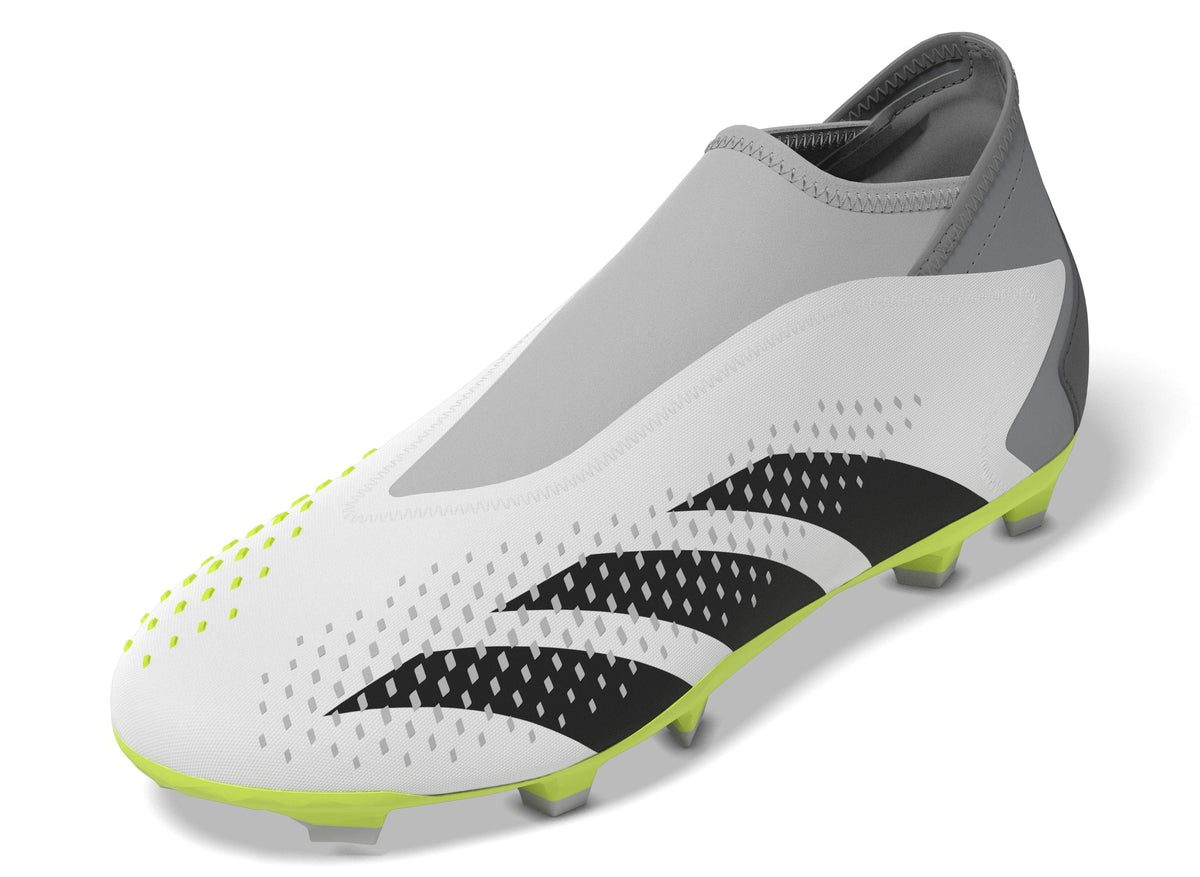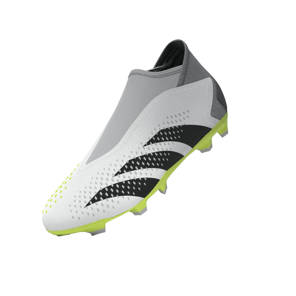 Features/Benefits: Top corner. Bottom corner. All the corners. adidas Predator Accuracy is crafted for goalscoring, so you know the ball will find the net. The fun's in choosing how it gets there. These laceless soccer cleats have a durable, coated textile forefoot that's covered in High Definition Texture for added grip on the ball. The firm ground outsole specializes in keeping you in control on dry, natural grass pitches. Made with a series of recycled materials, this upper features at least 50% recycled content. This product represents just one of our solutions to help end plastic waste.