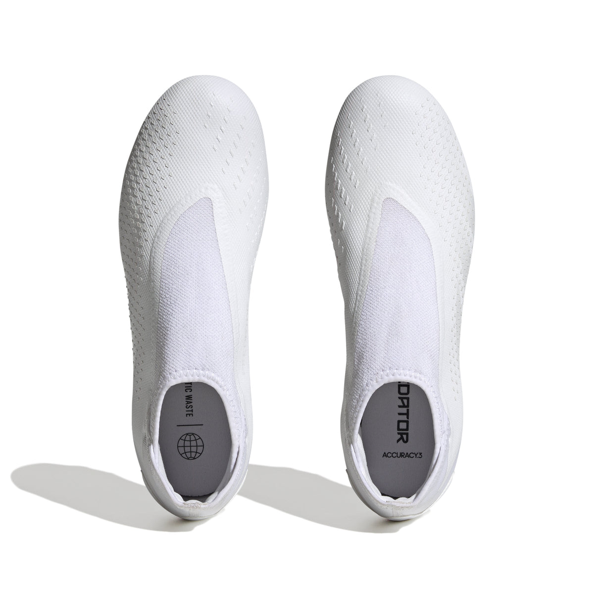 Features/Benefits: These laceless adidas football boots were built to improve your accuracy with the ball at your feet. Spread across their coated textile forefoot, High Definition Texture provides grip for pinged passes and drilled shots. Perfected for firm ground, the outsole delivers maximum traction to keep you in control. Made with a series of recycled materials, this upper features at least 50% recycled content. This product represents just one of our solutions to help end plastic waste. BOLD LATERAL BRANDING: 3-stripes lateral branding COATED TEXTILE: DURABLE AND SOFT TOUCH UPPER MATERIAL. Firm Ground Outsole: Move with maximum traction on firm ground (dry natural grass) with the FG outsole Firm Ground Outsole: Outsole designed for maximum traction on firm ground (dry natural grass) High Definition Texture: 3D texture allows for better grip on the ball and close boot to ball contact LACELESS MID CUT COLLAR: FOR CLEAN BALL-STRIKING. LACELESS MID CUT COLLAR: HIGH REBOUND STRETCH COLLAR MATERIAL PROVIDES A SUPPORTIVE AND COMFORTABLE FIT. LACELESS MID CUT COLLAR: PREMIUM LACELESS CONSTRUCTION ALLOWS FOR EASY STEP AND PROVIDES A SECURE LOCKDOWN.