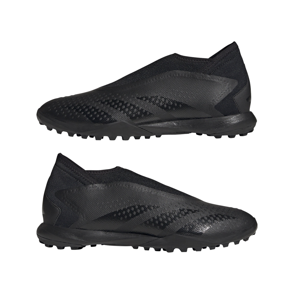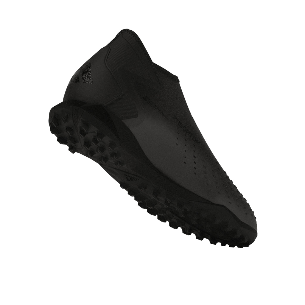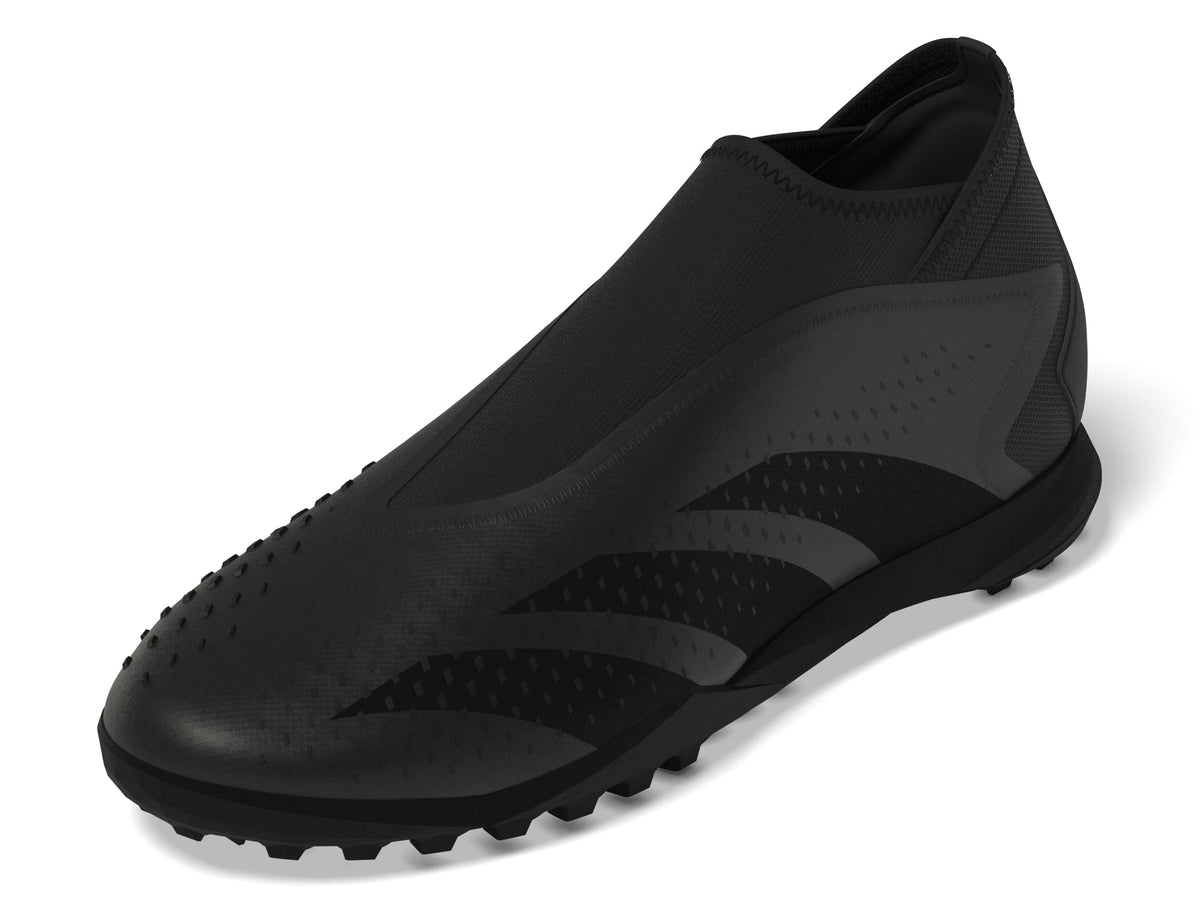Control + accuracy = confidence. When the goal's in your sights, target perfection with adidas Predator Accuracy. The laceless coated textile upper on these soccer shoes includes High Definition Texture across its strike zone. A mixture of debossed elements and raised print, it's there to help you nail every pass and shot. Underneath, a lug rubber outsole keeps you in boss mode on artificial turf.