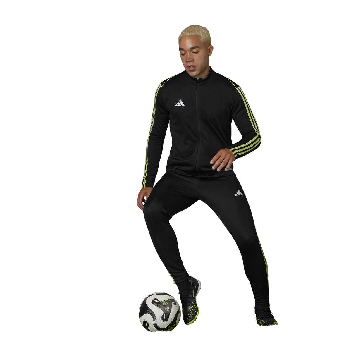 A 3D textured upper is designed to grip the ball for spin and accurate placement, while a coated textile material base provides a durable and soft upper for comfort. The outsole with traction studs is designed for stability when striking the ball. Stretchable PRIMEKNIT 2-piece mid-cut collar allows for easy entry and secure lockdown with extra material around the ankle.