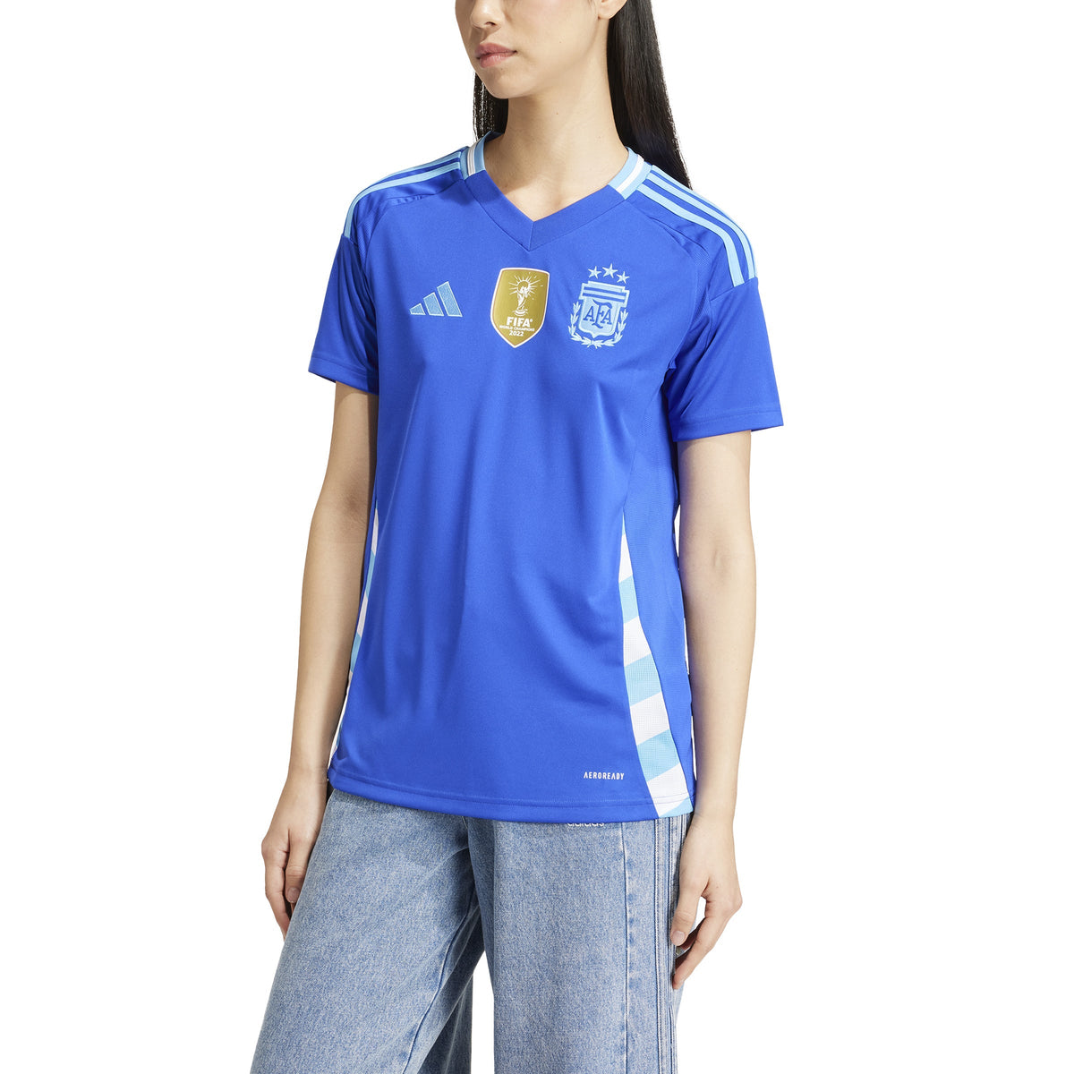 Rock Argentina's colors in an adidas away jersey inspired by the nation's music scene. Showing off metallic elements and an eye-catching shade of blue, this soccer shirt is designed to keep fans comfortable with its mesh inserts and moisture-managing AEROREADY. A woven team crest takes center stage while you sing for your team. This product is made with 100% recycled materials. By reusing materials that have already been created, we help to reduce waste and our reliance on finite resources and reduce the footprint of the products we make.