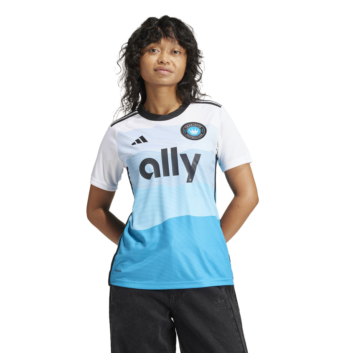Mountains to sea. Inspired by topographical charts, the dynamic pattern on the front of this adidas Charlotte FC soccer jersey nods to the majestic North Carolina coastline. Created to keep fans comfortable in their home colors, it includes moisture-managing AEROREADY. With a woven crest on the chest and a state map signoff on the back, this standout top is a game day essential. This product is made with 100% recycled materials. By reusing materials that have already been created, we help to reduce waste and our reliance on finite resources and reduce the footprint of the products we make.