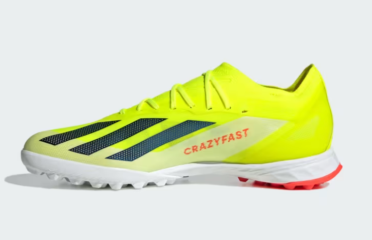 Nothing beats the rush of pure speed. Change the game in an instant and leave defenders trailing with lightweight adidas X Crazyfast. Looking slick with a semi-translucent Aeropacity Speedskin upper, these artificial turf soccer cleats include reinforcements only where they're needed. A low-profile Lightstrike midsole keeps you acting on instinct. This product features at least 20% recycled materials. By reusing materials that have already been created, we help to reduce waste and our reliance on finite resources and reduce the footprint of the products we make.