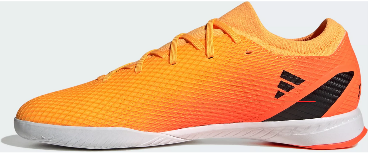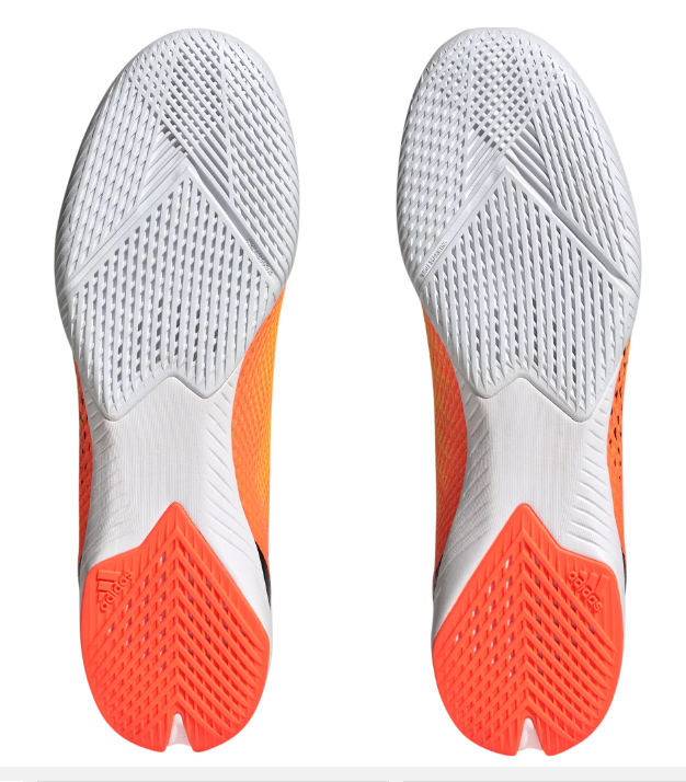 Features/Benefits: Leave your limits behind in these lightweight football boots. Their textile upper has a supportive flat-knit collar for solid lockdown and an external heel lock for stability at high speeds. Underneath, a cushioned EVA midsole sits on a grippy rubber outsole made for acceleration on flat indoor surfaces. Made with a series of recycled materials, this upper features at least 50% recycled content. This product represents just one of our solutions to help end plastic waste.