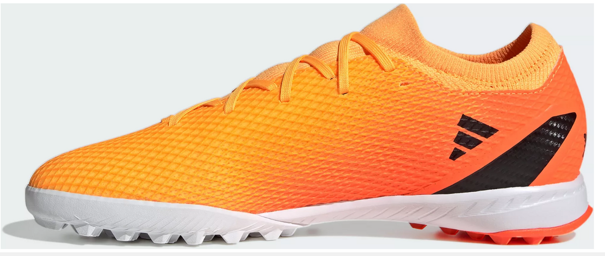 Features/Benefits: Leave your limits behind in these lightweight football boots. Their textile upper has a supportive flat-knit collar for solid lockdown and an external heel lock for stability at high speeds. Underneath, a cushioned EVA midsole sits on a lugged rubber outsole made for acceleration on artificial turf. Made with a series of recycled materials, this upper features at least 50% recycled content. This product represents just one of our solutions to help end plastic waste.