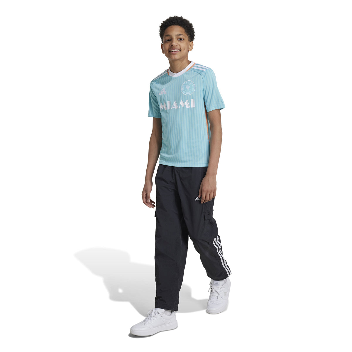 Standing out with a squeeze of Miami sporting heritage. This juniors' Inter Miami CF third jersey from adidas incorporates classic details and flashes bright orange hues that salute the iconic Orange Bowl. AEROREADY keeps young soccer fans dry while they shout for their team. Starring on the smooth fabric, an art deco-style team name and Messi's name and number have the final word. This product is made with 100% recycled materials. By reusing materials that have already been created, we help to reduce waste and our reliance on finite resources and reduce the footprint of the products we make.