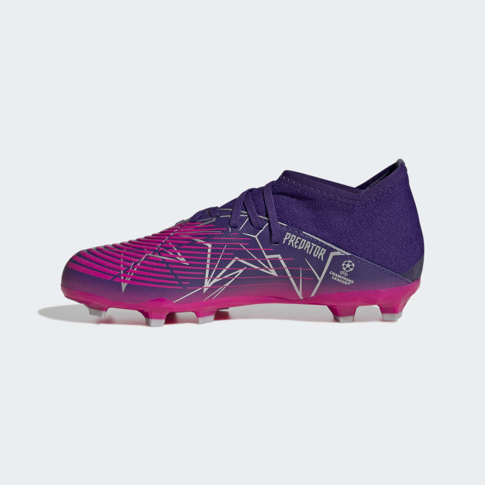 Swerve. Power. Control. When you have the edge, the pitch is full of possibilities. See the beautiful game from a brand-new angle in adidas Predator. These juniors' football boots help you own the ball. Showing off UEFA Champions League graphics, their Control Zone upper has strategically placed areas of grip-enhancing print. The striking faceted outsole keeps you in charge on firm ground.