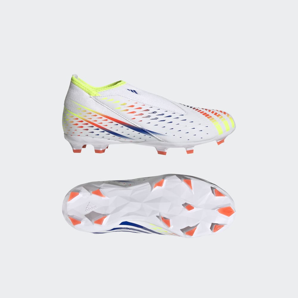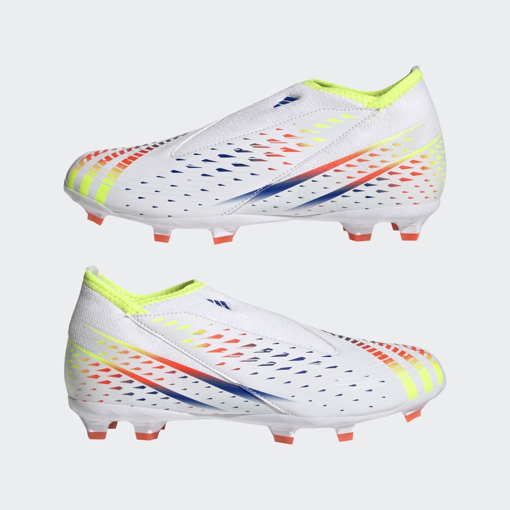 Features/Benefits: Swerve. Control. Power. adidas Predator has all angles covered. Hit the pitch and find your edge in these juniors' firm ground soccer cleats. Deployed across their laceless synthetic upper, grippy Control Zone print assists you with every touch of the ball. Underneath, an eye-catching, angular TPU outsole ensures you stay in charge on dry natural grass.