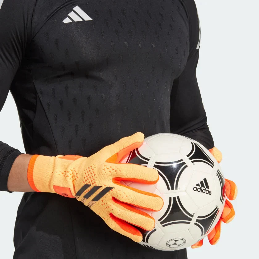 Unlock a new dimension of agility. These adidas X Speedportal goalkeeper gloves keep you quick with a lightweight, streamlined design. Their strapless, flexible knit backhand offers a locked-in fit thanks to an engineered cuff that wraps snugly around the wrist. On the outside, their URG 2.0 latex palm helps you grip the soccer ball and cushion fiercely struck shots. On the inside, non-slip silicone ensures you're at one with your gloves. A minimum of 50% of this product is a blend of recycled and renewable materials.