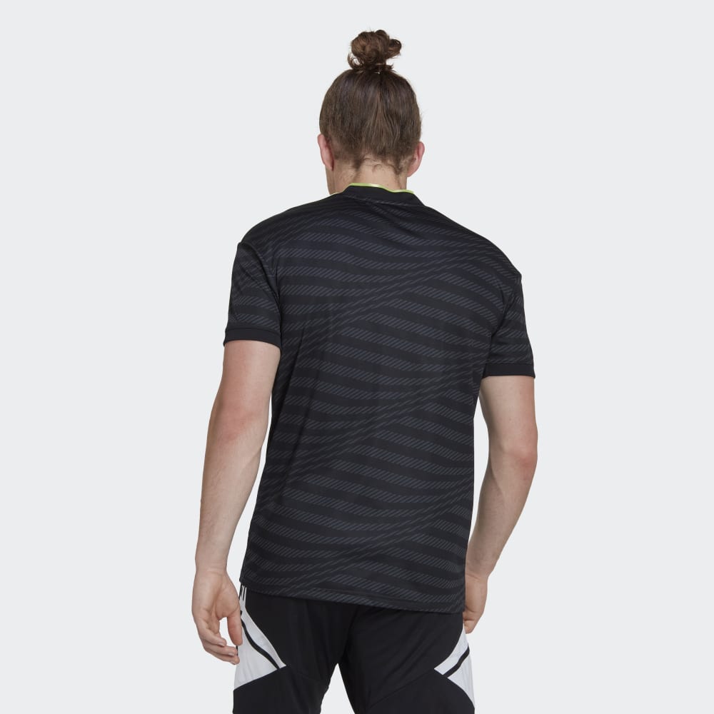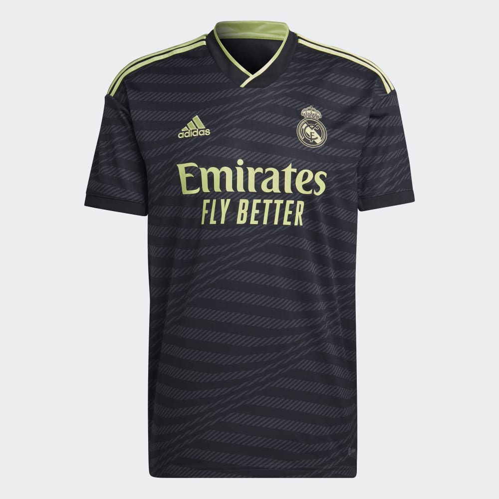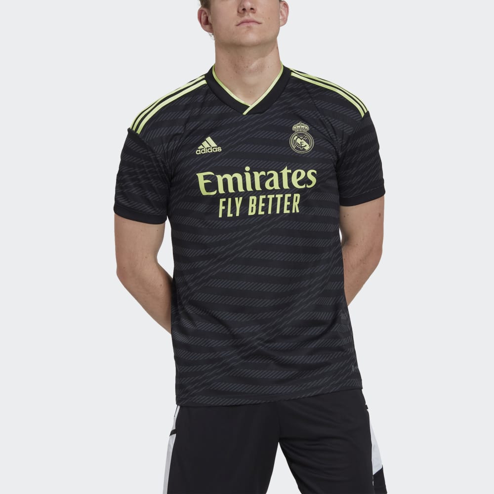 Features/Benefits: Even when you have 120 years of success behind you, building for the future is the priority. This adidas Real Madrid jersey takes the new-look Bernabéu as its muse. Undulating lines follow the gradients of the stadium's sweeping curves, and the lime green, embroidered details incorporate a metallic effect that's inspired by the stadium's silvery exterior. Created to keep soccer fans comfortable, this shirt has moisture-wicking AEROREADY and mesh panels. Made with 100% recycled materials, this product represents just one of our solutions to help end plastic waste.