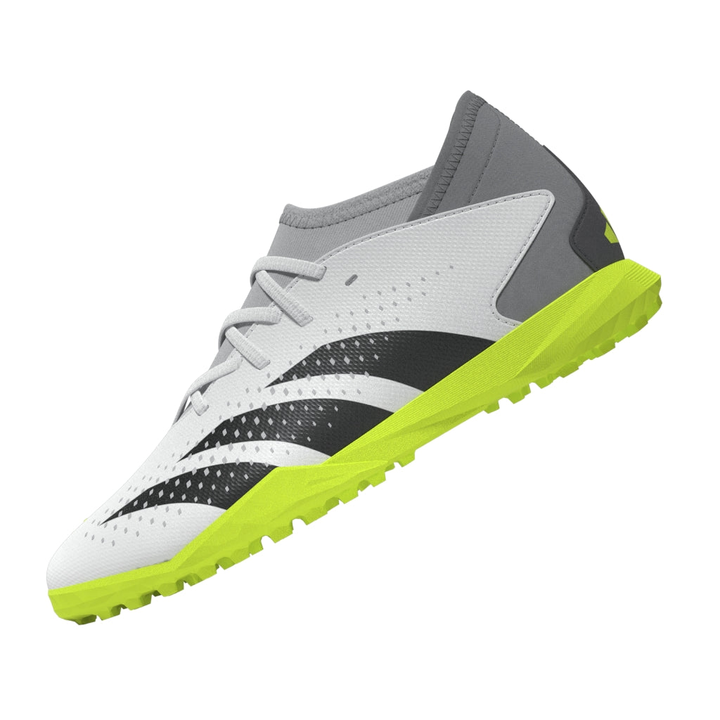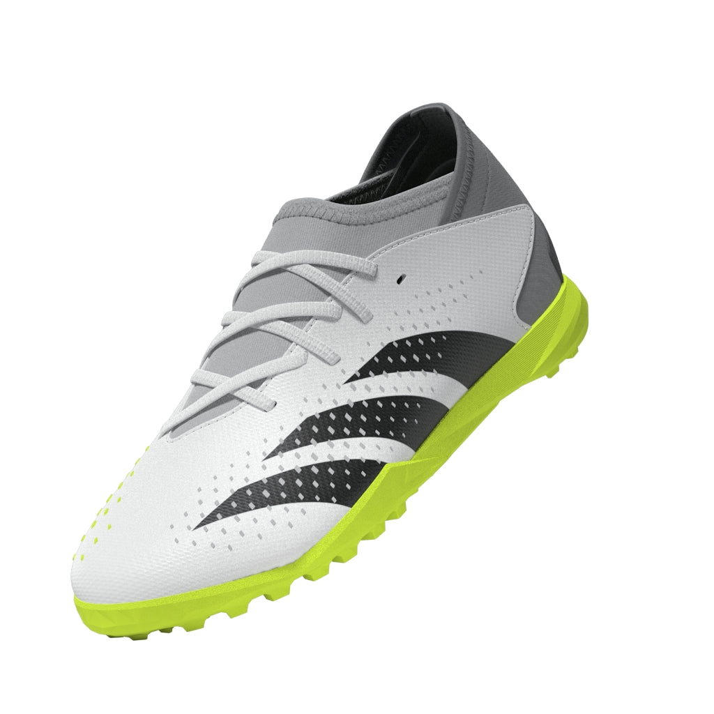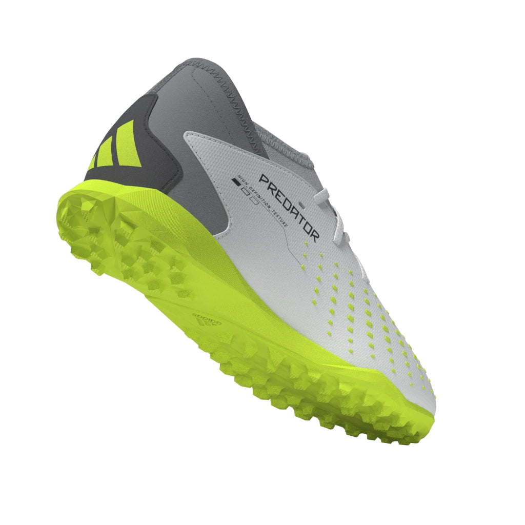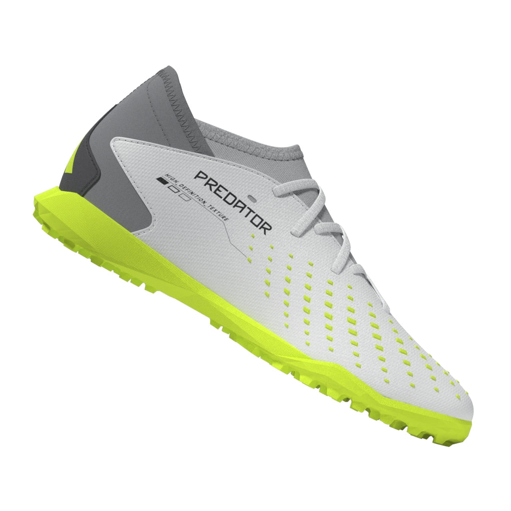 Features/Benefits: Top corner. Bottom corner. All the corners. adidas Predator Accuracy is crafted for goalscoring, so you know the ball will find the net. The fun's in choosing how it gets there. These juniors' soccer shoes have a soft synthetic forefoot that's covered in High Definition Texture for added grip on the ball. Underneath, a lug rubber outsole ensures you dominate on artificial turf courts.