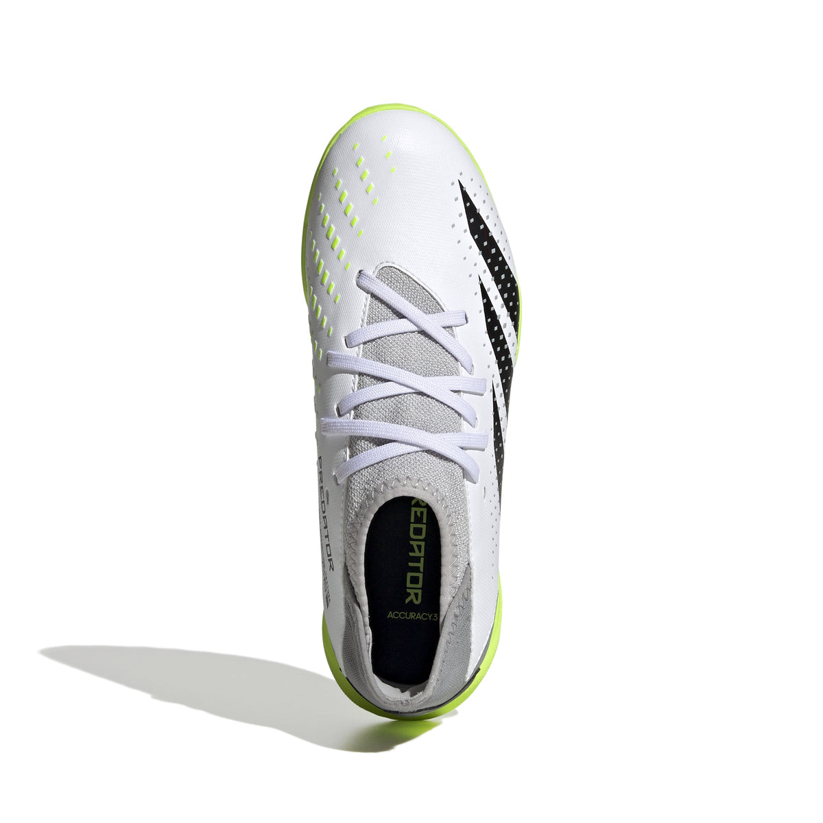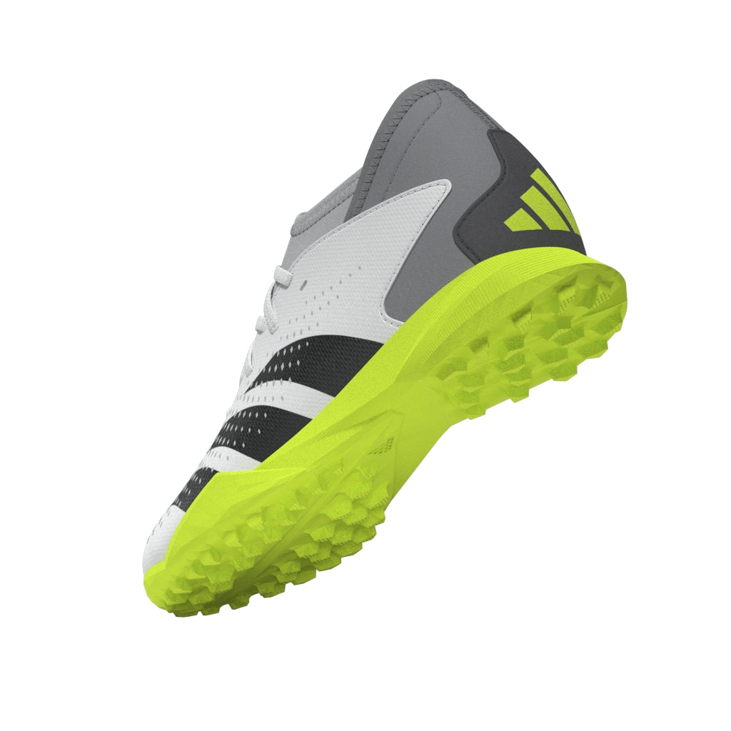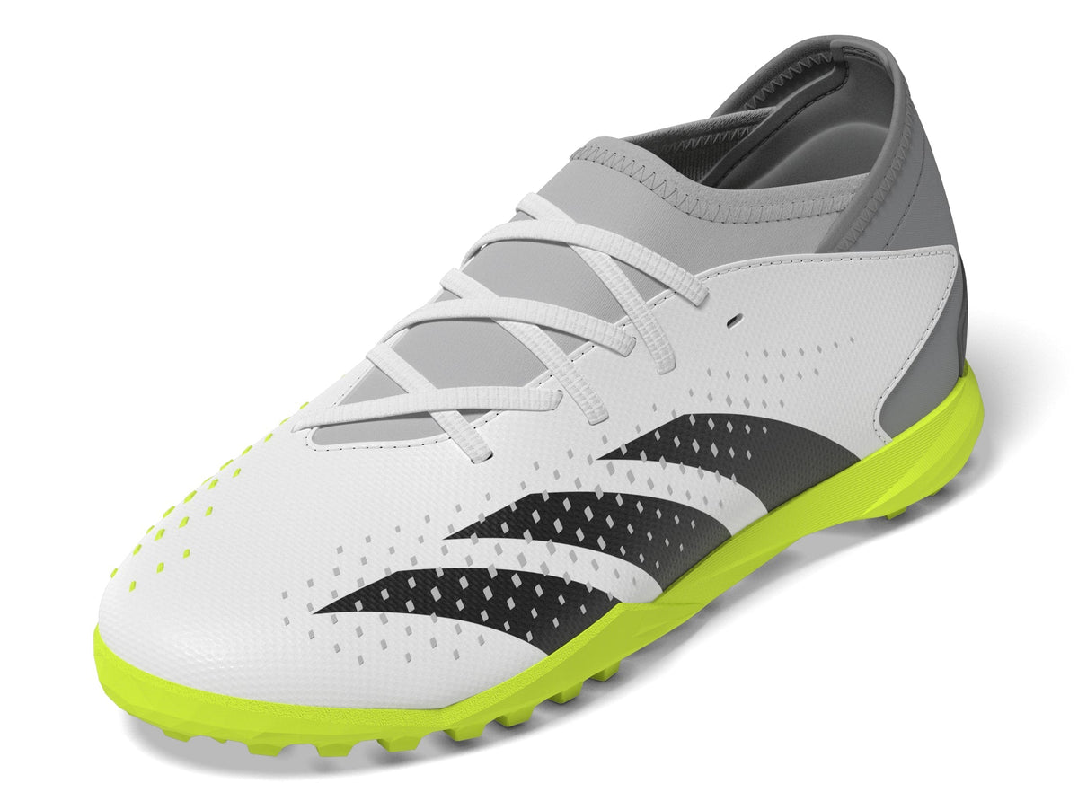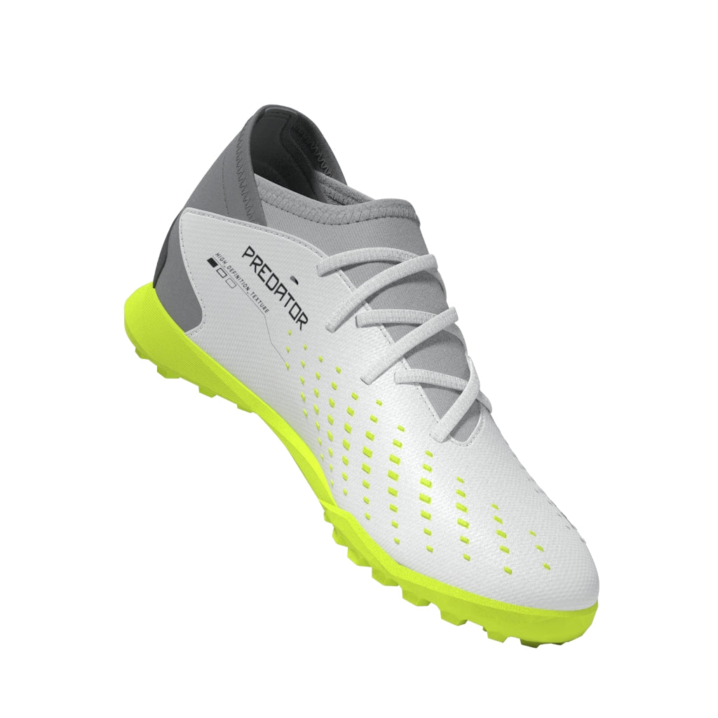 Features/Benefits: Top corner. Bottom corner. All the corners. adidas Predator Accuracy is crafted for goalscoring, so you know the ball will find the net. The fun's in choosing how it gets there. These juniors' soccer shoes have a soft synthetic forefoot that's covered in High Definition Texture for added grip on the ball. Underneath, a lug rubber outsole ensures you dominate on artificial turf courts.