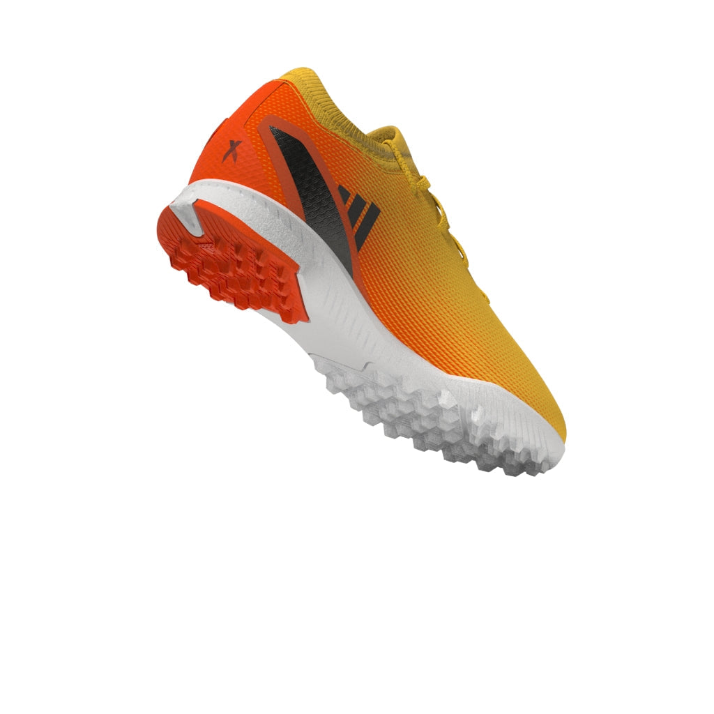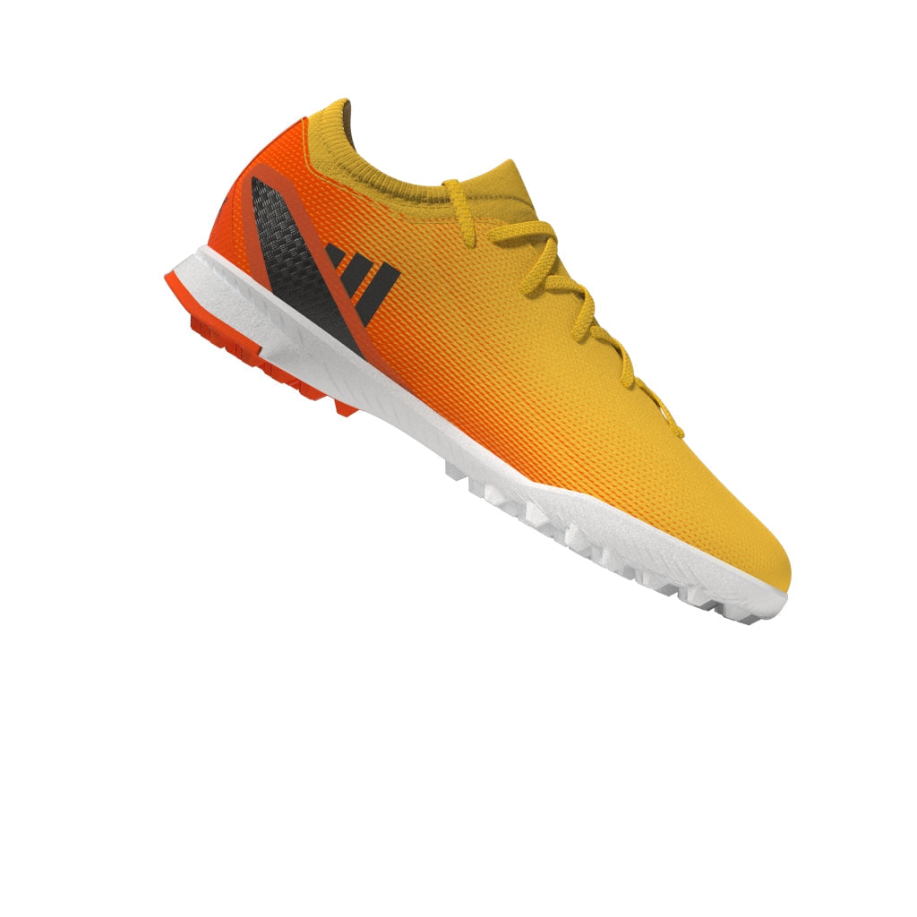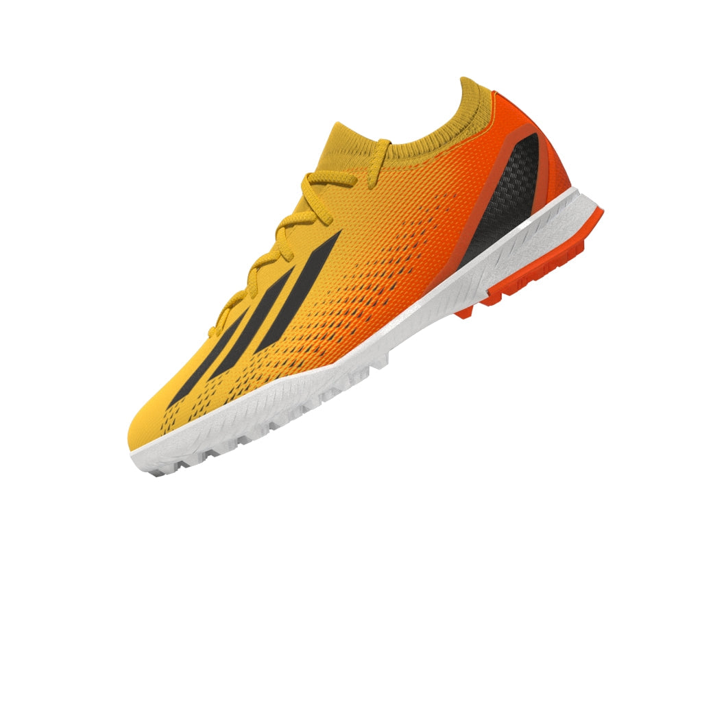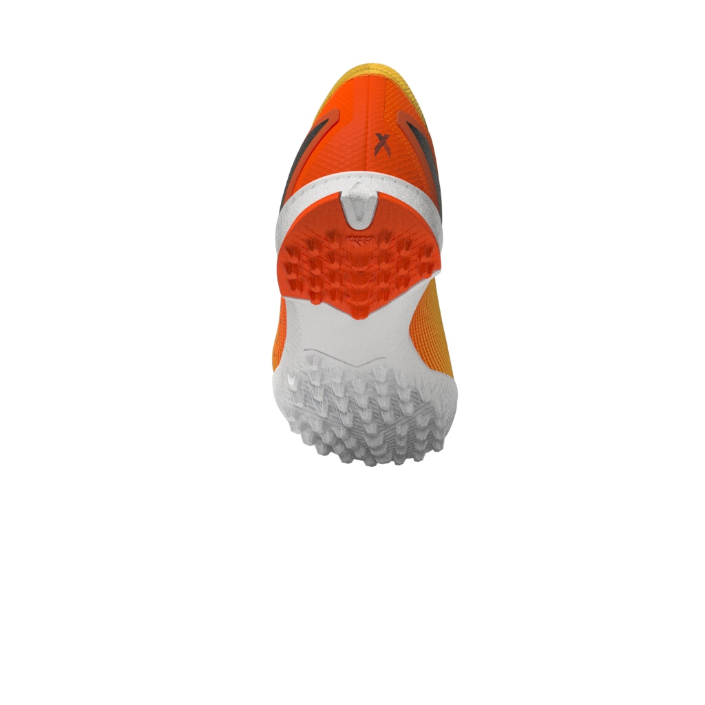Features/Benefits: Leave your limits behind in these juniors' lightweight football boots. Their textile upper has a supportive flat-knit collar for solid lockdown and an external heel lock for stability at high speeds. Underneath, the lugged rubber outsole is made for acceleration on artificial turf. Made with a series of recycled materials, this upper features at least 50% recycled content. This product represents just one of our solutions to help end plastic waste.