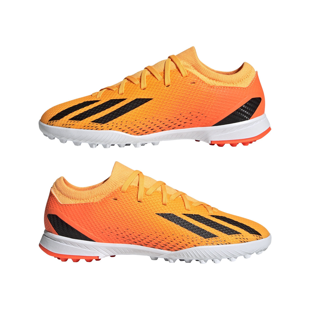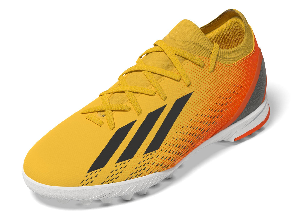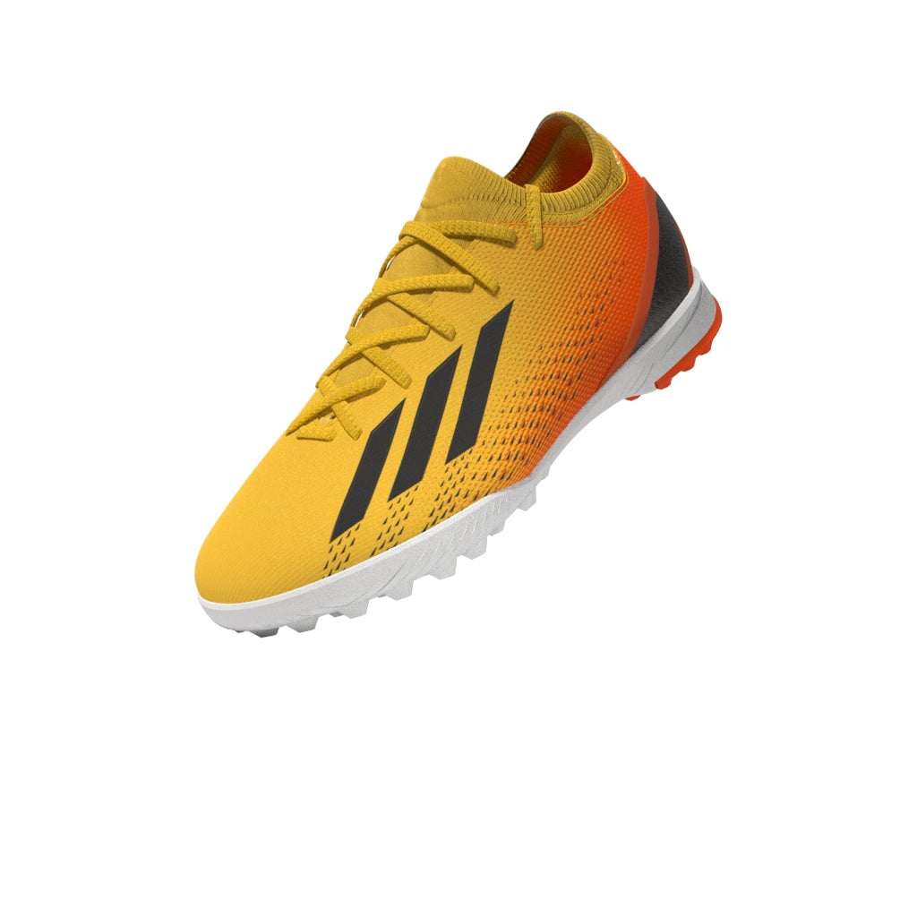 Features/Benefits: Leave your limits behind in these juniors' lightweight football boots. Their textile upper has a supportive flat-knit collar for solid lockdown and an external heel lock for stability at high speeds. Underneath, the lugged rubber outsole is made for acceleration on artificial turf. Made with a series of recycled materials, this upper features at least 50% recycled content. This product represents just one of our solutions to help end plastic waste.