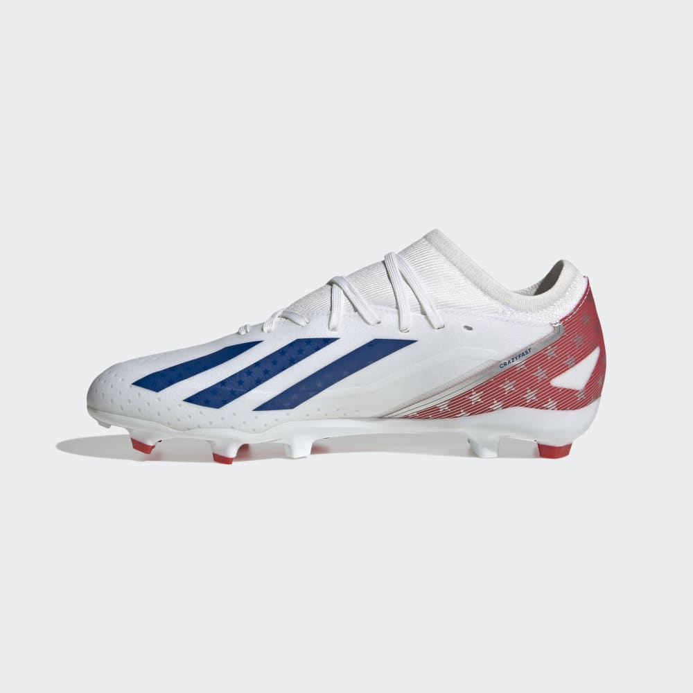 Crazyfast is a whole new sensation of game-changing speed. The limited-edition X Crazyfast.3 USA Firm Ground Boots are part of a collection built to propel adidas athletes toward the ultimate prize. Decked out in USA-inspired graphics, their lightweight coated textile upper has a flat-knit collar for solid lockdown. The firm ground outsole will keep you out in front on dry natural grass.