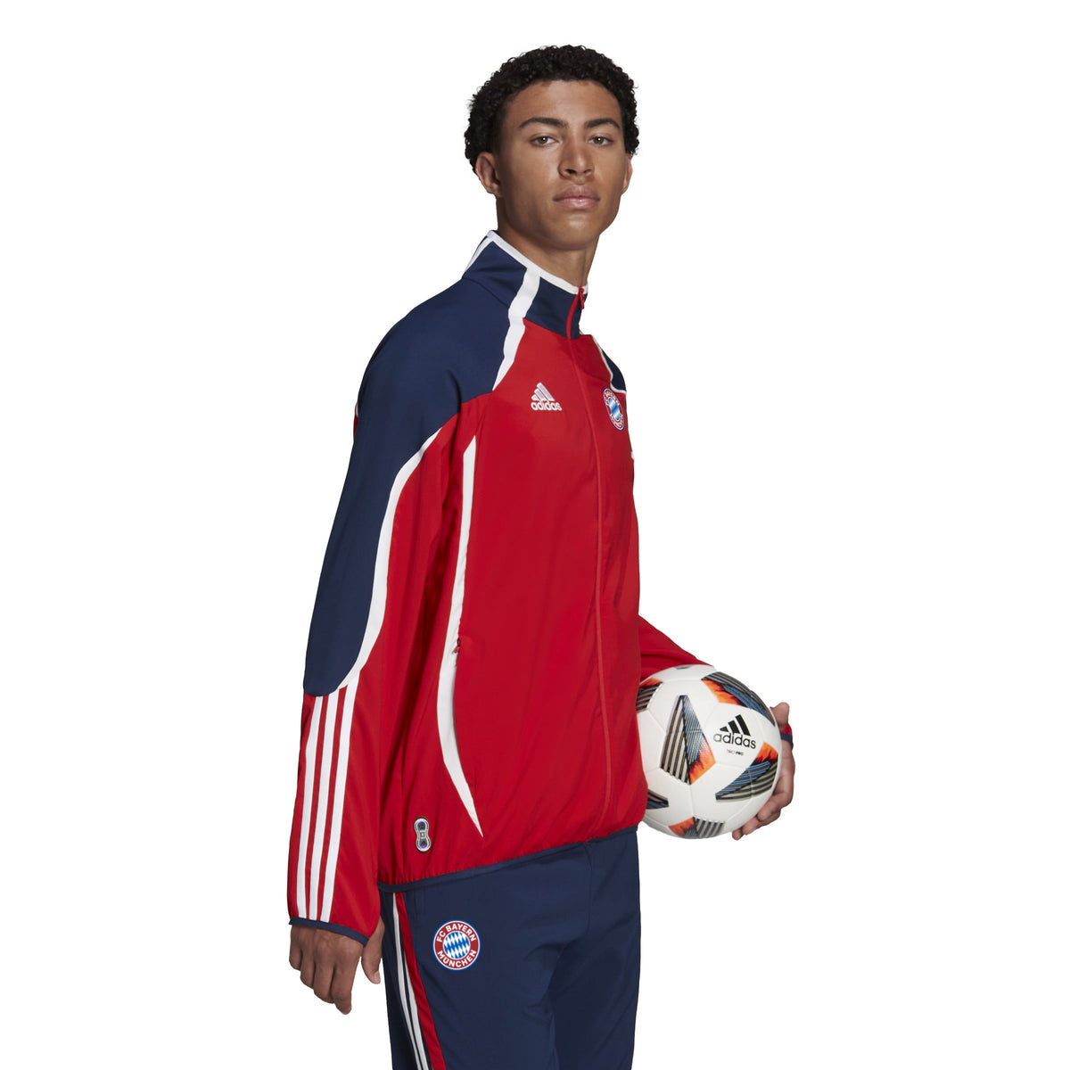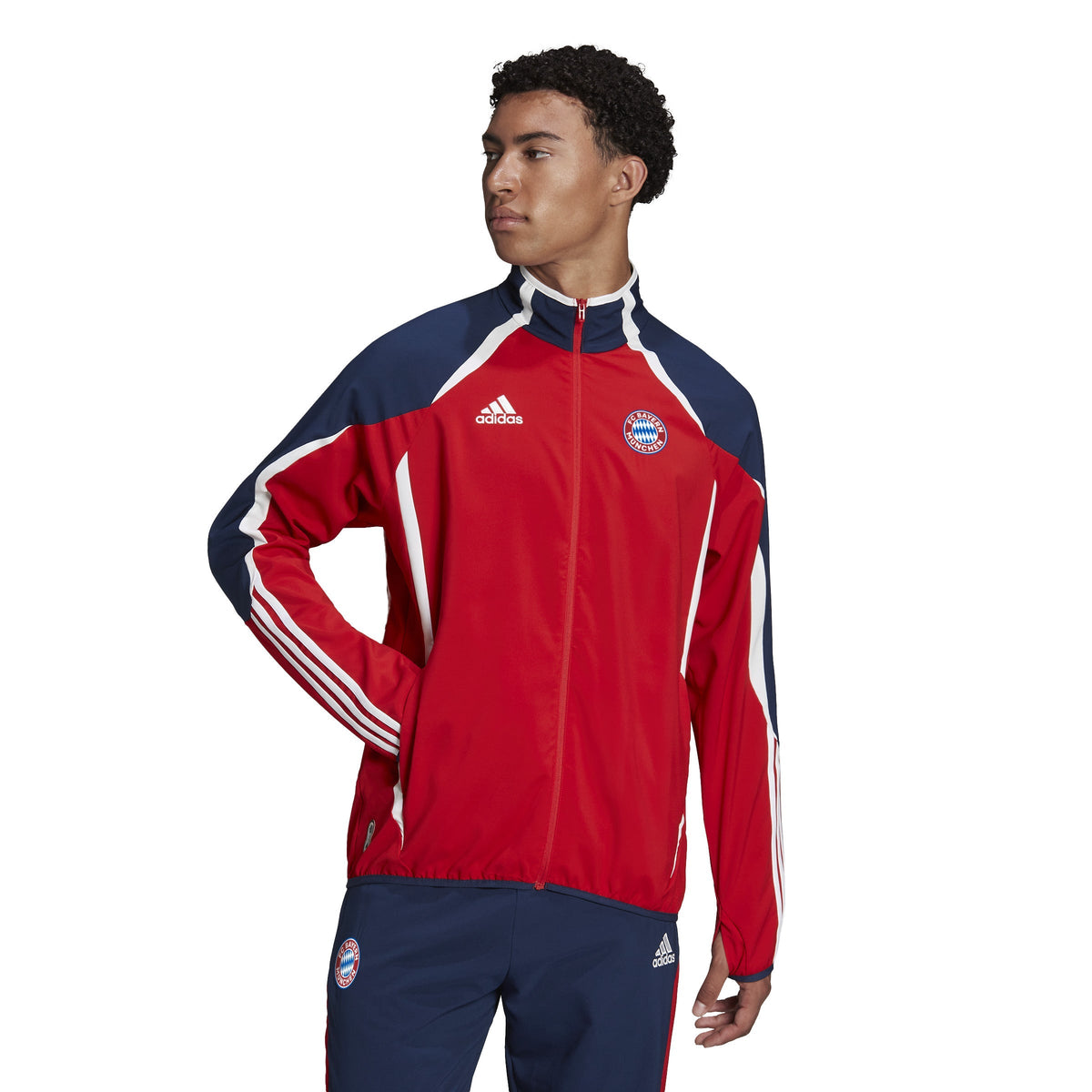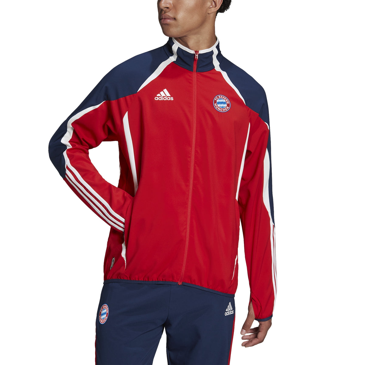 Capture the spirit of the game that brings the world together. This FC Bayern football jacket heads back to summer '06 to mark 15 years of adidas Teamgeist. Its curved details and iconic cut lines recall an era-defining look for a club that proudly wore it the first time around. Soft fabric ensures a comfortable wear and thumbholes let you pull the sleeves over your hands on cold days. An embroidered club badge and classic Teamgeist signoff ensure every last detail is accounted for.